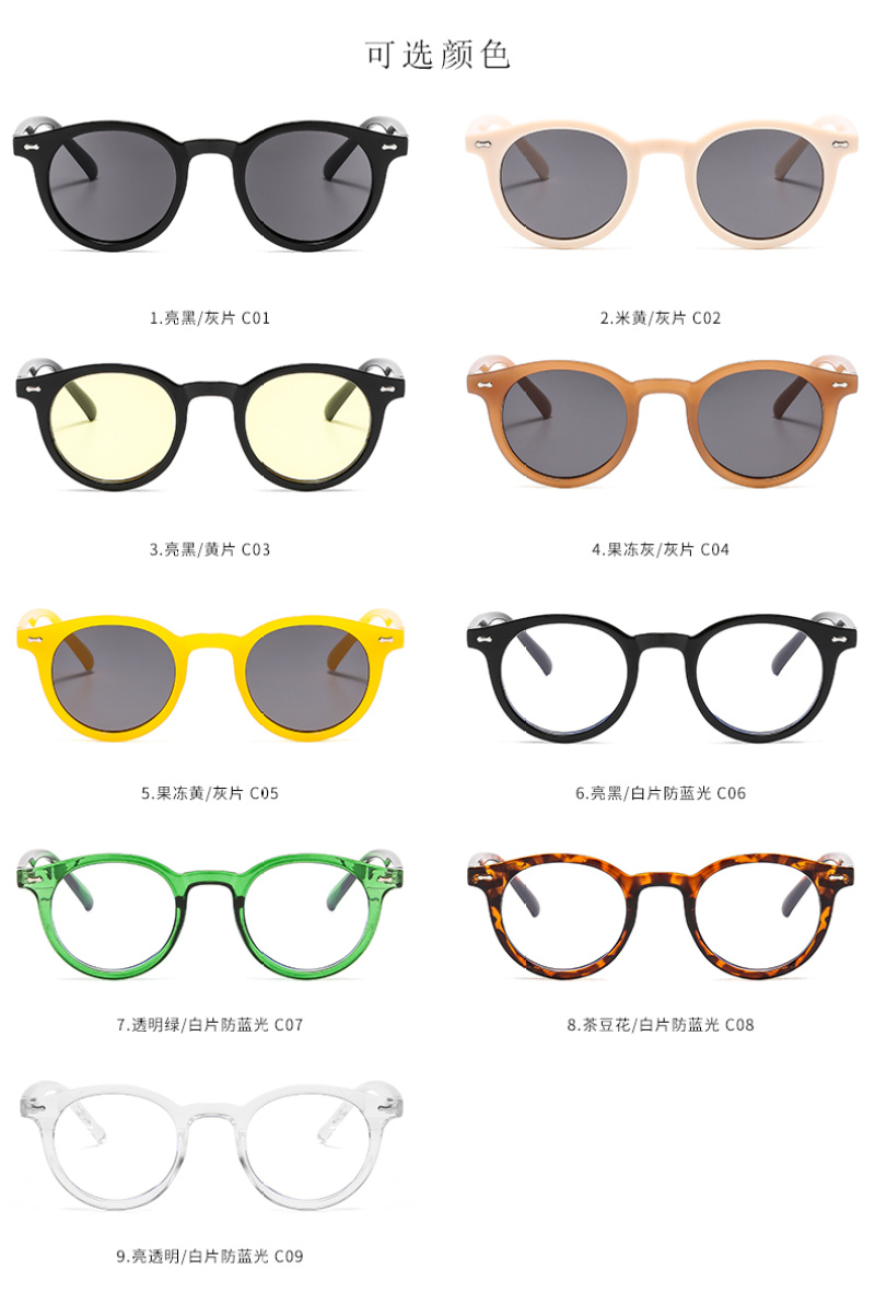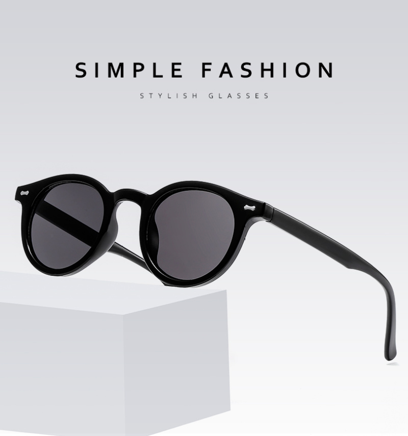欧美跨境小框米钉太阳眼镜复古圆形防紫外线墨镜 现货批发