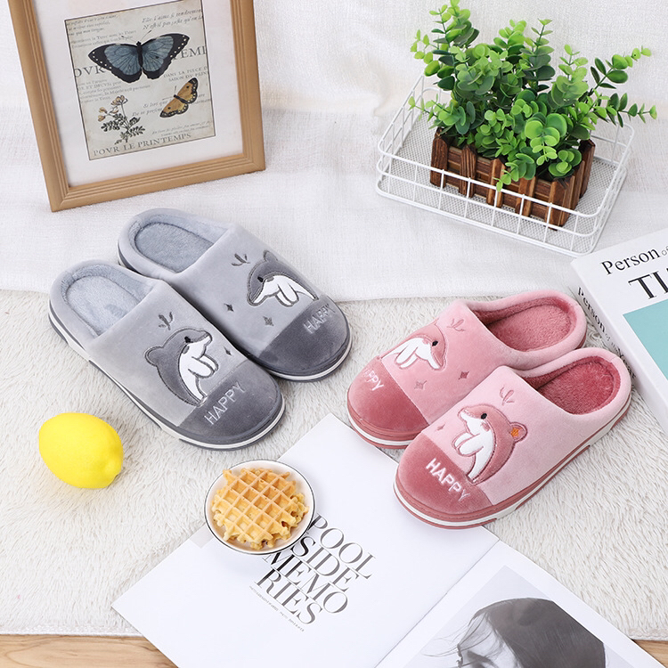 棉拖鞋双拼绣海豚鱼情侣冬季毛毛可爱居家居室内保暖月子棉鞋 h