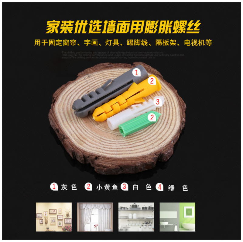 膨胀管首先,同一名称叫膨胀管的有两个物品,一种是石油膨胀管,另一种为安装配螺丝用的膨胀管又叫(塑料膨胀螺丝)在这里,我们介绍的是正是安装用的塑料膨胀管,基于地方方言与习惯叫法不同,所谓南腔北调,因此膨胀管,俗称有:胀管,胀塞,膨胀胶粒,墙塞,塑料锚栓等多种叫法。膨胀管应该说在于膨胀螺丝之前就有了,是从木塞的基础演变到塑料材质膨胀塞,经时间与环境的考验,环捷膨胀管的性能远远优于木塞,第一要以减冷缩热胀的幅度,在抗老化的效果上也优胜于木材质很多,并且在受力好,与配套尺寸上有方便、标准。在要求绝缘与遇水(潮湿)等特殊环境上能长久的发挥最大的紧固力。从而深得广大用户的追捧. 膨胀管的用途:用于紧固各种中小类挂件物品的连接与安装。可用于室内外。避免用于吊重物,重型器械物件,以免造成不必要的损失.膨胀管配套:一般用需要自攻螺丝使用头型不限如:沉头自攻螺丝,圆头自攻螺丝,大扁头自攻螺丝,外六角内六角自攻螺丝、双头螺丝等,(周边附件:垫片、螺丝盖、胶圈、挂勾等)避免使用快牙(比较锋利木螺丝)以免螺丝螺丝螺丝在迫进时切断膨胀管体。建议配套加硬自攻螺丝安装使用,以发挥最好的摩擦力,达到最佳紧固效果。膨胀管的原料,一般膨胀管采用软质胶HDPE(聚乙烯(polyethylene ,简称PE)是乙烯经聚合制得的一种热塑性树脂。在工业上,也包括乙烯与少量α-烯烃的共聚物。