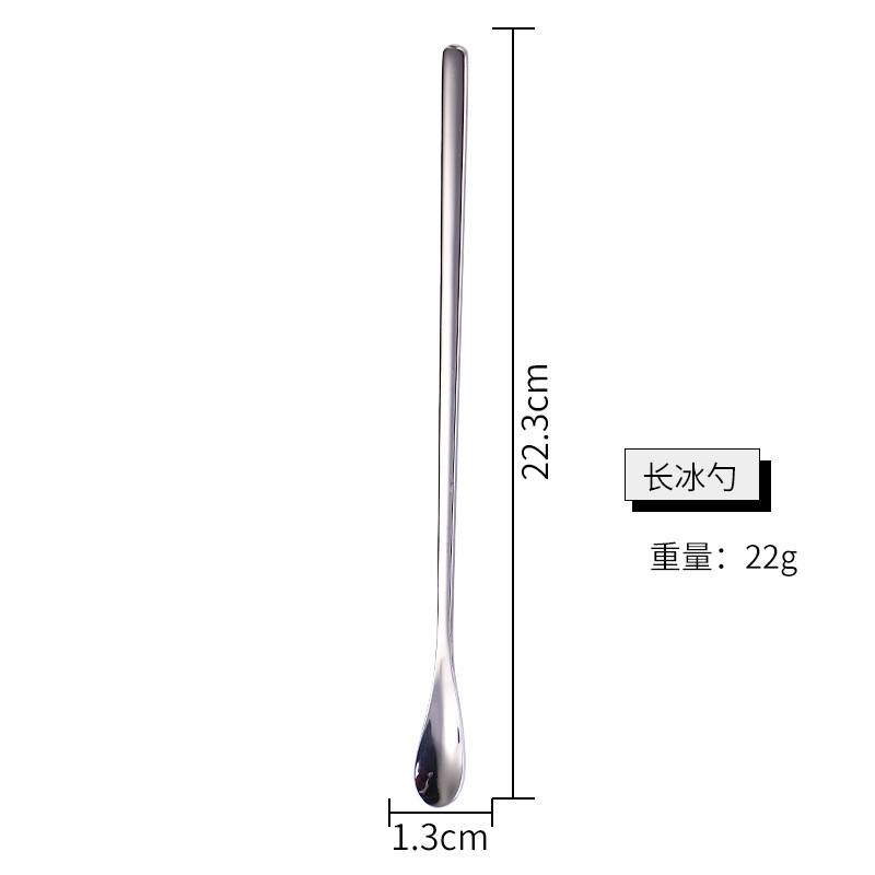 新品304不锈钢冰勺23cm搅拌勺长柄蜂蜜勺调酒吧勺可定制厂家批发