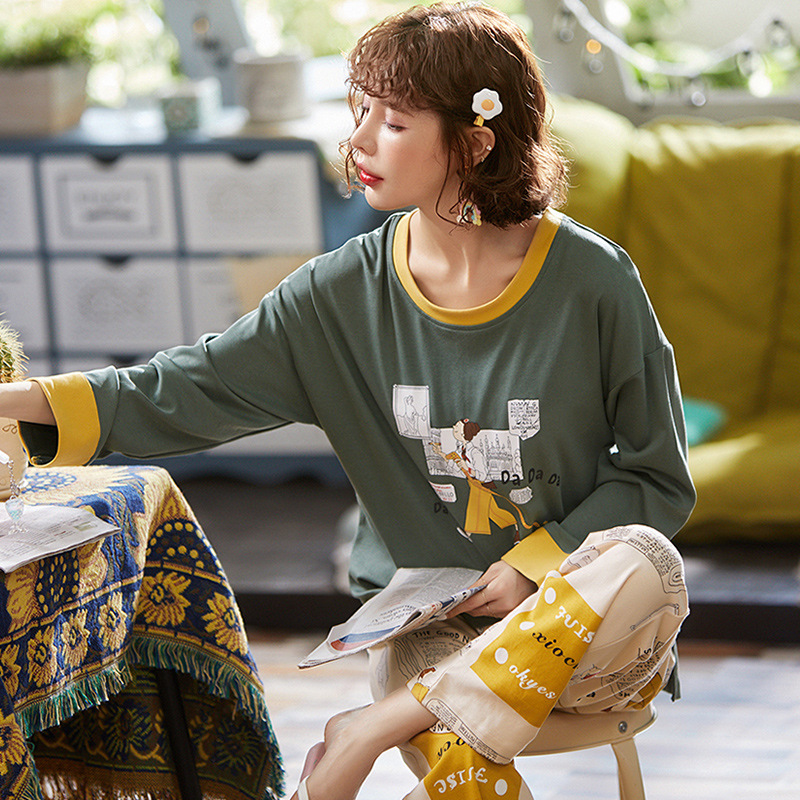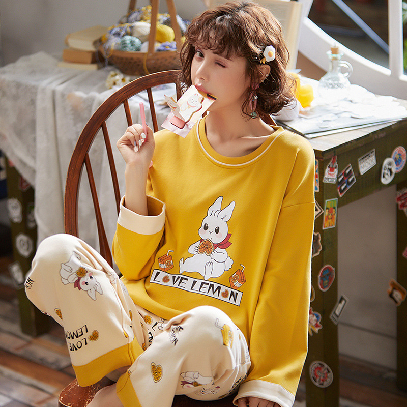 秋季新品卡通可爱家居服学生休闲女士长袖长裤睡衣两件套可外穿