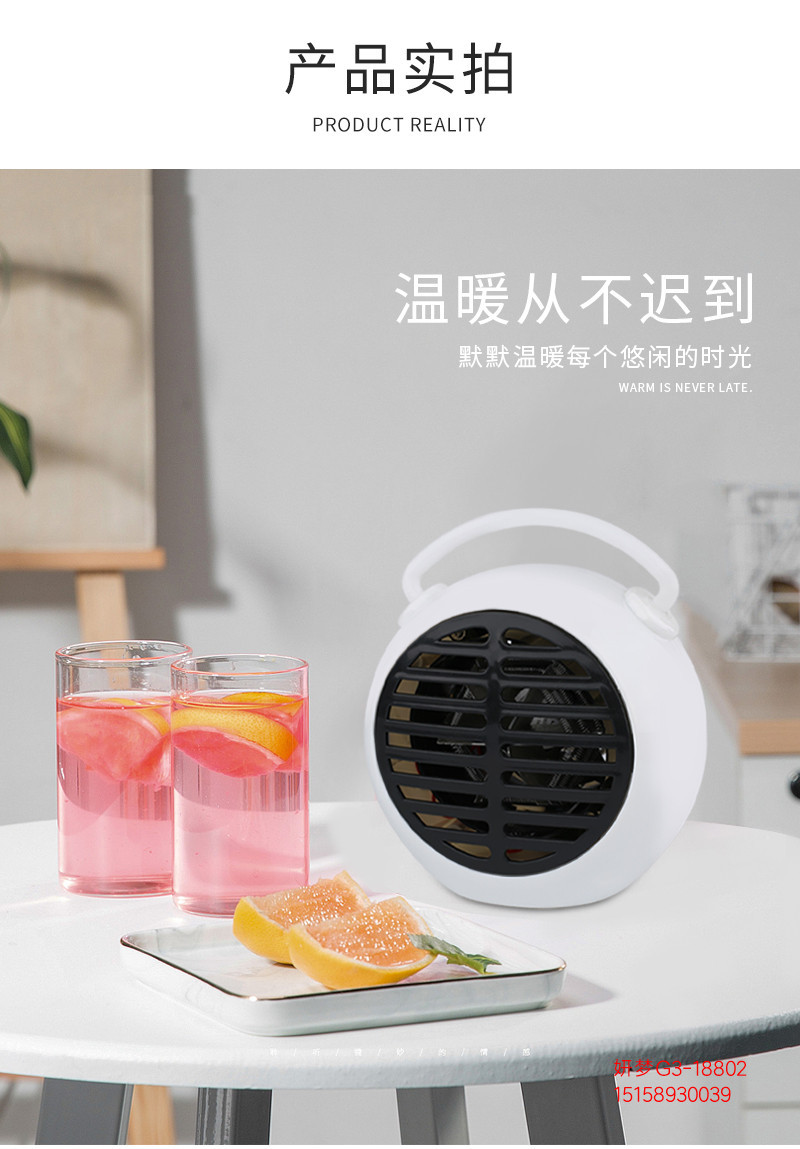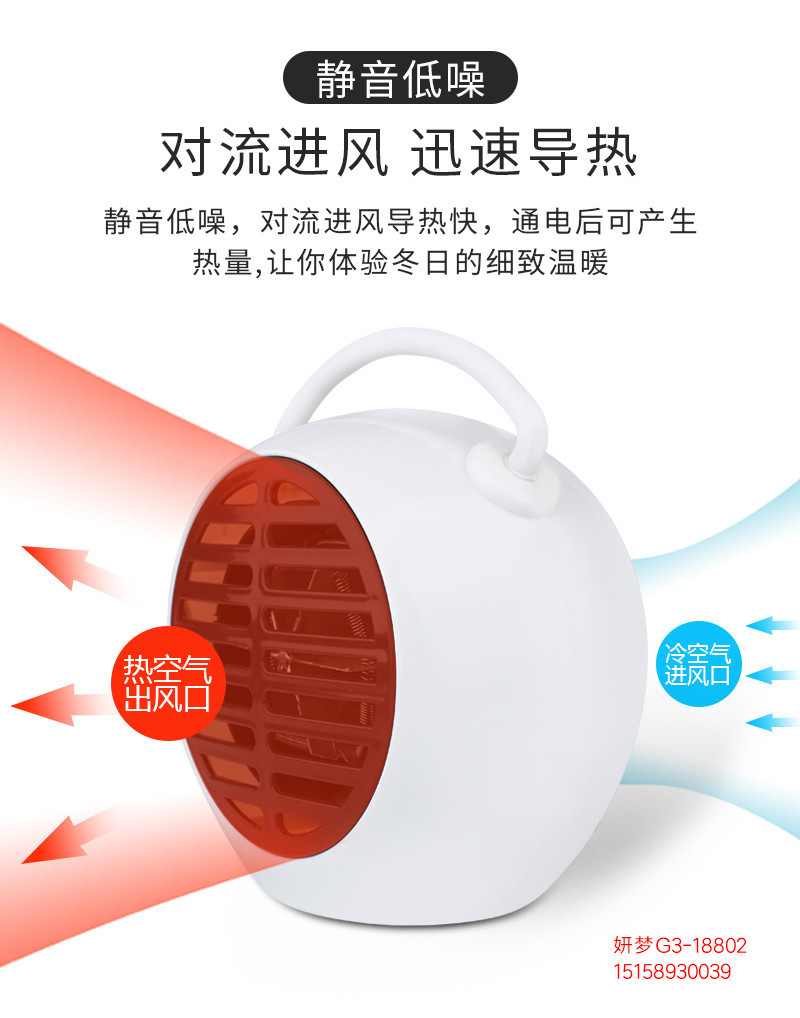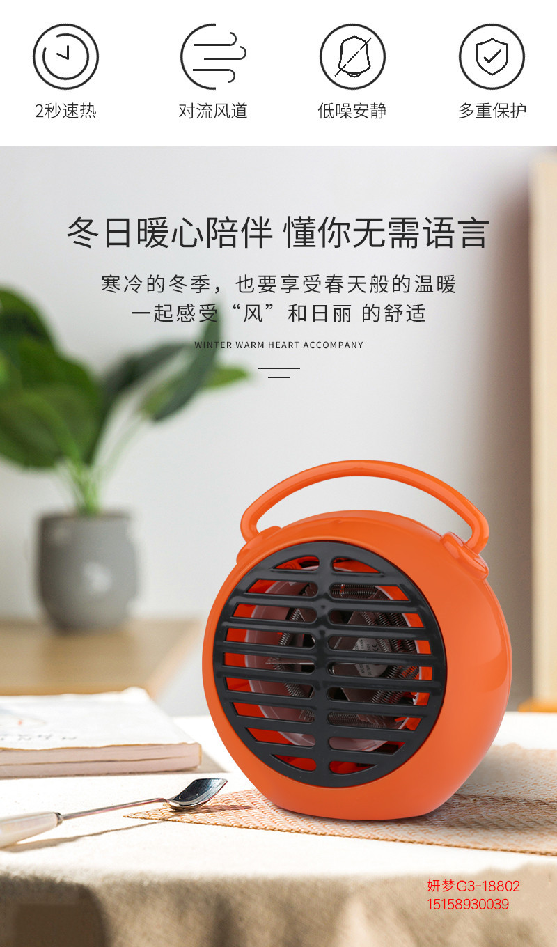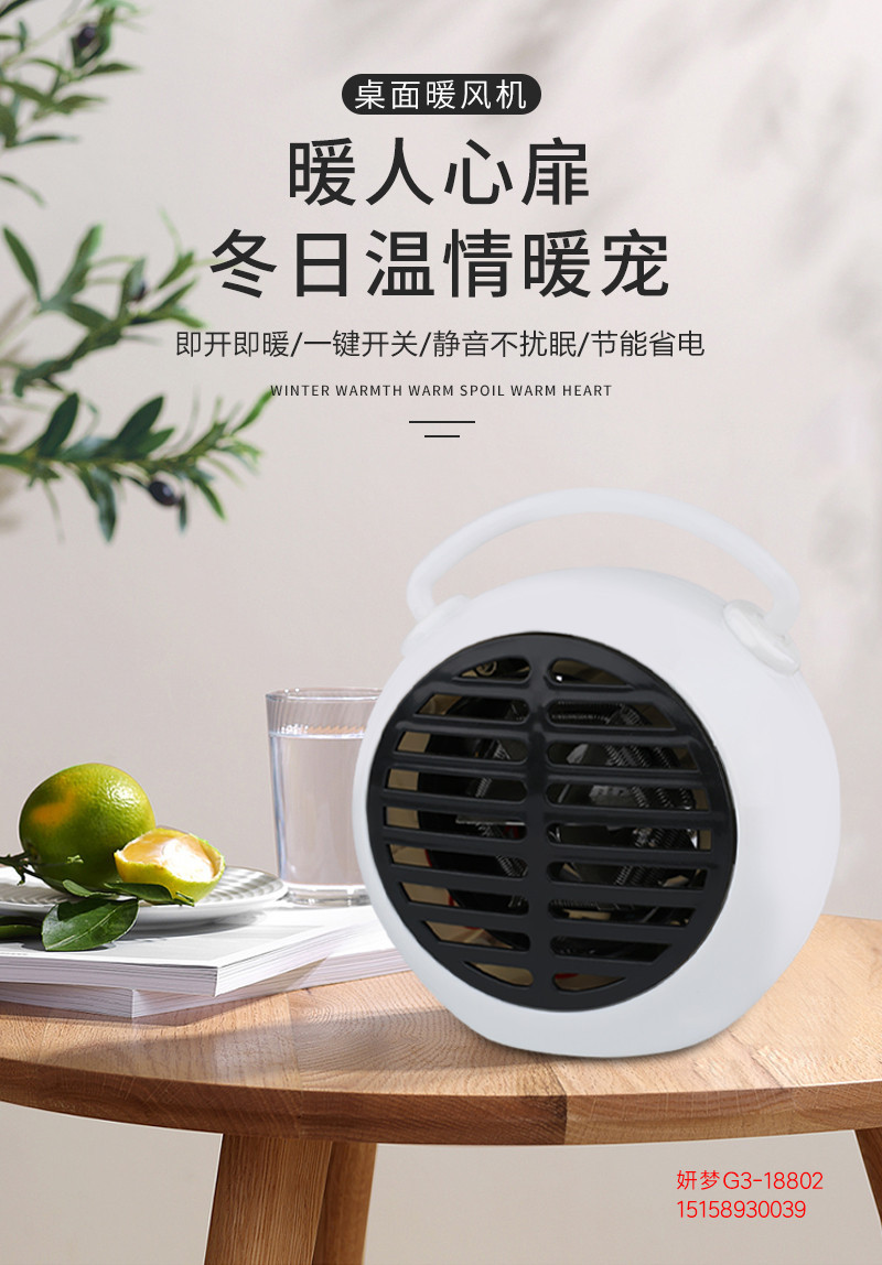 商品名称:手提闹钟形静音暖风机 桌面取暖器