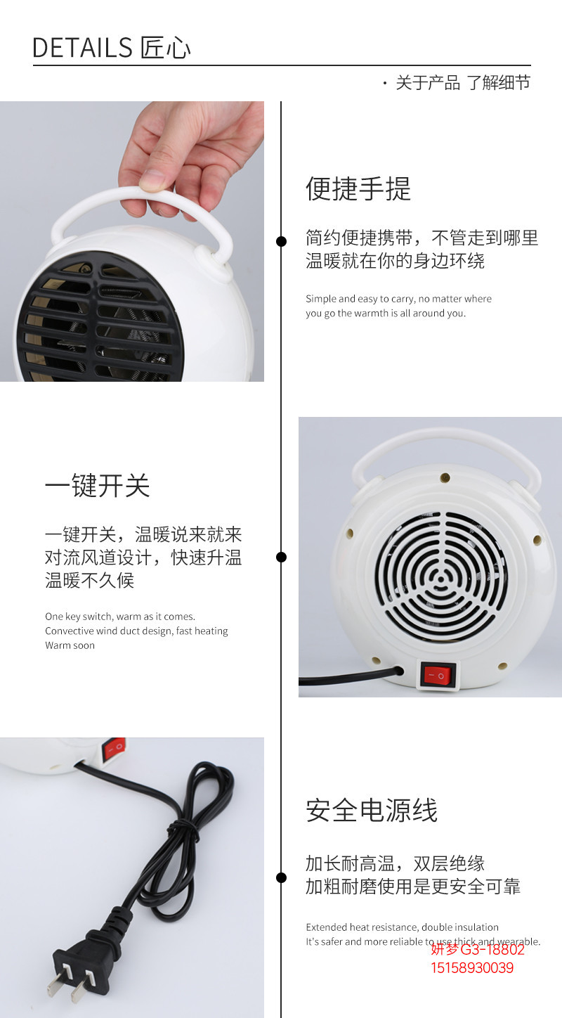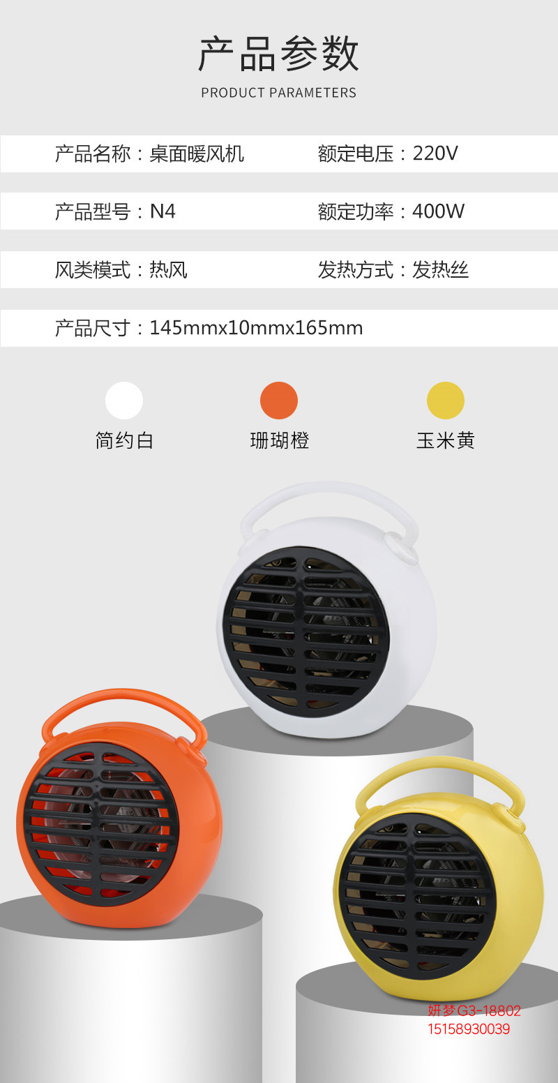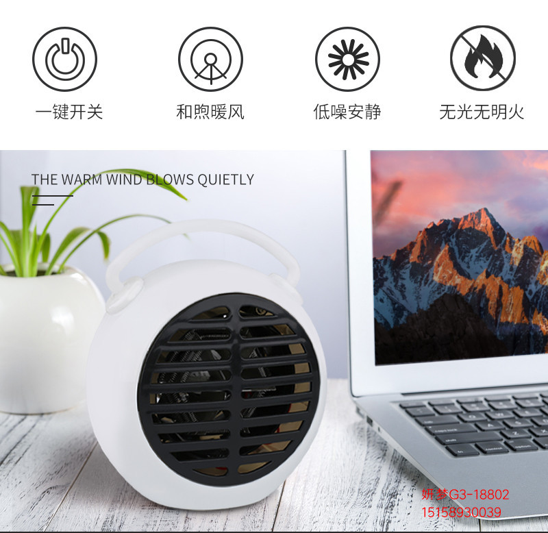商品名称:手提闹钟形静音暖风机 桌面取暖器