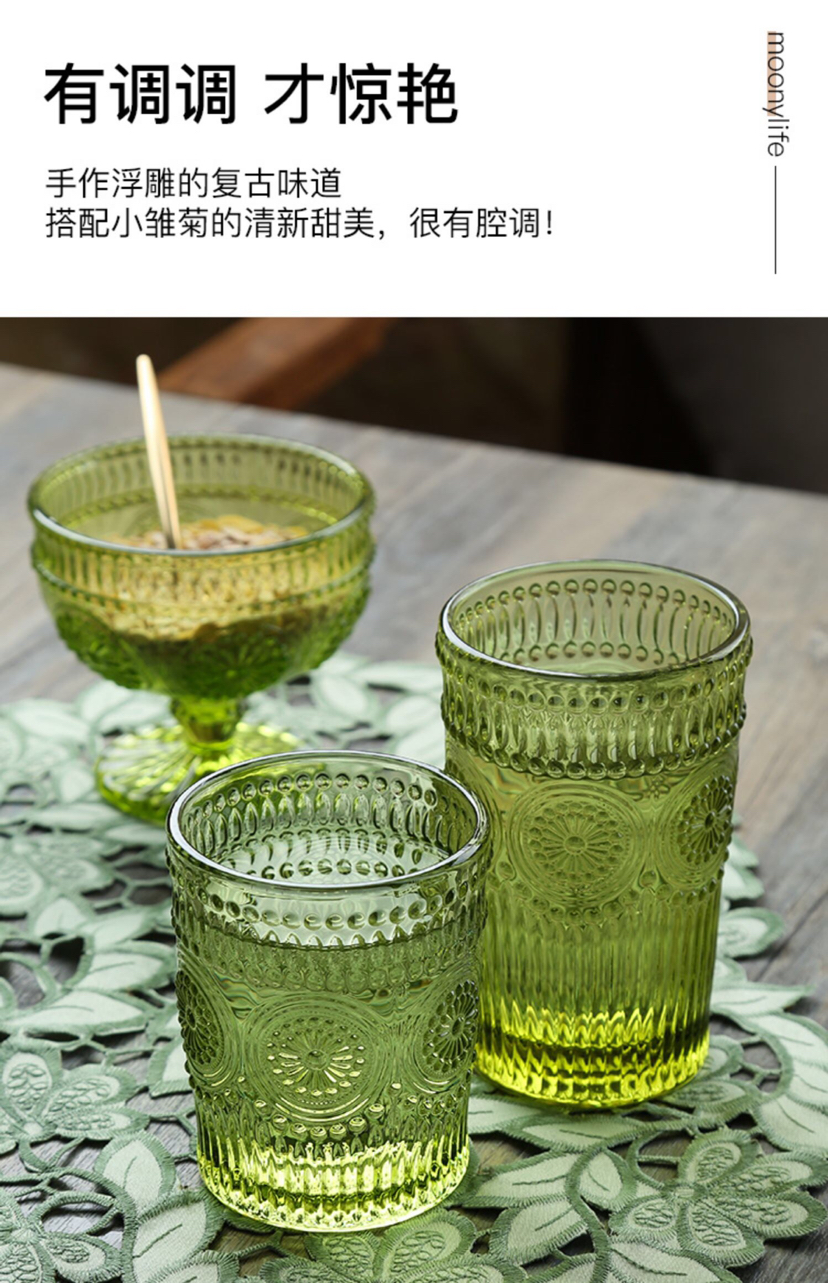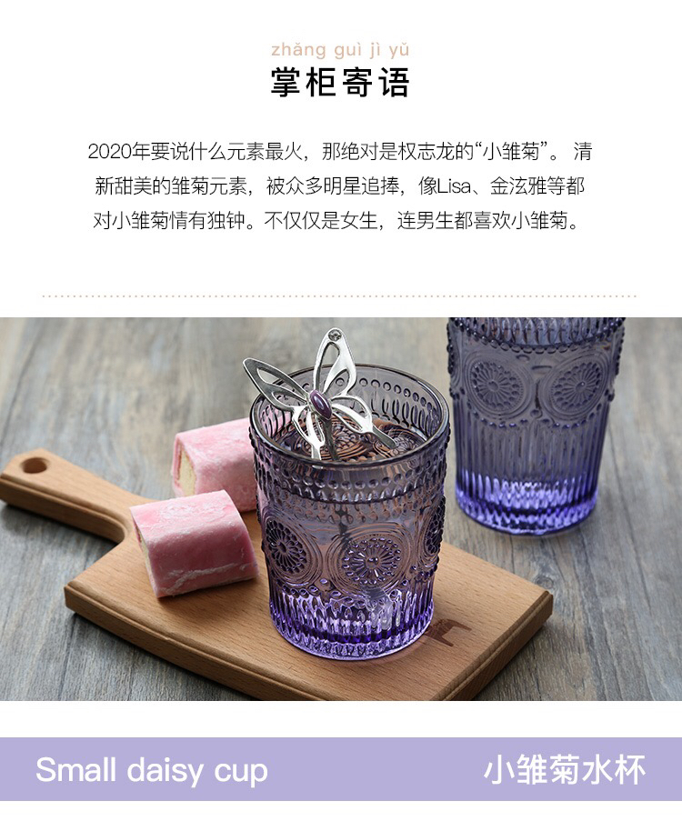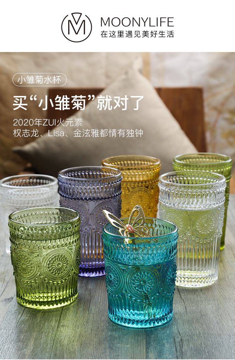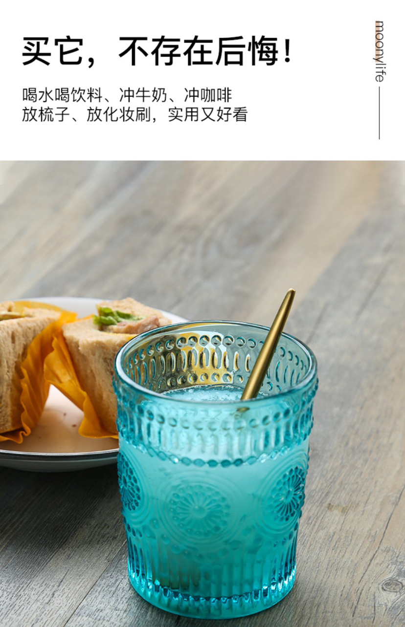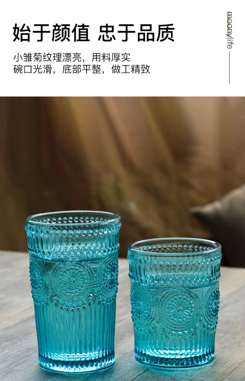小雏菊玻璃杯 浮雕水杯蓝色水晶太阳花杯子ins风酒杯果汁杯牛奶杯