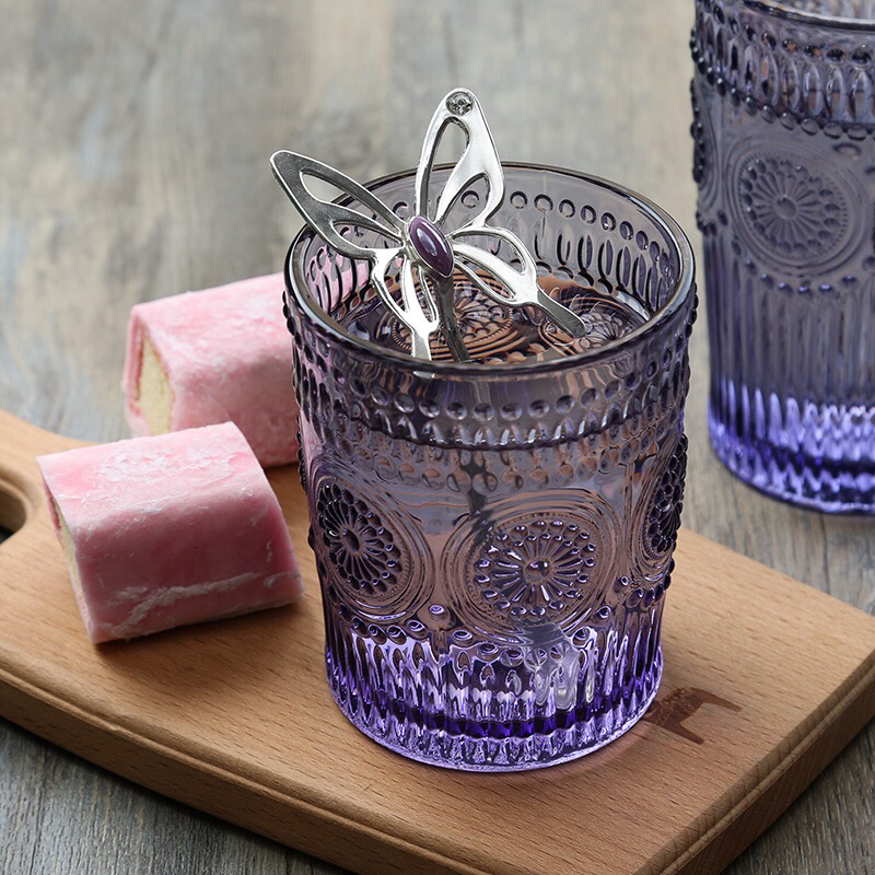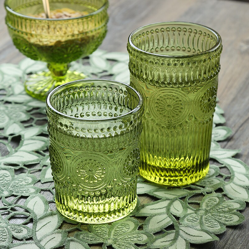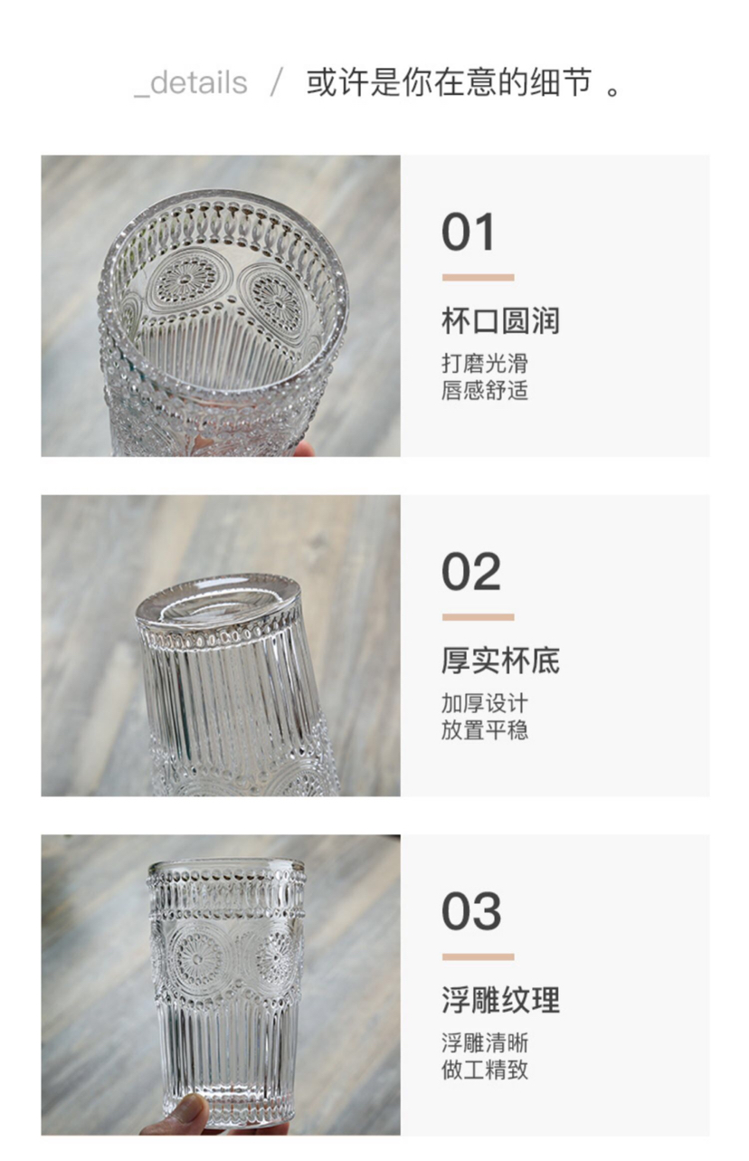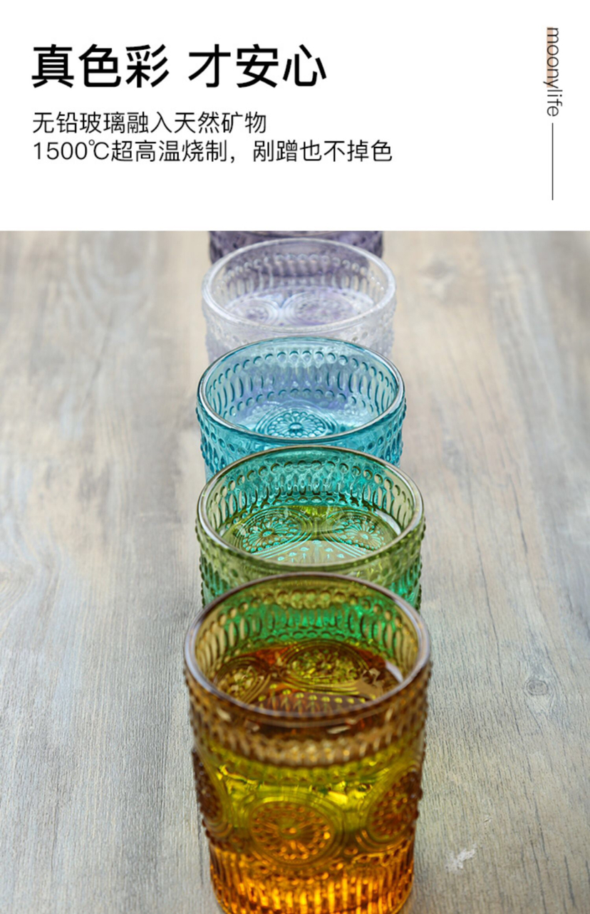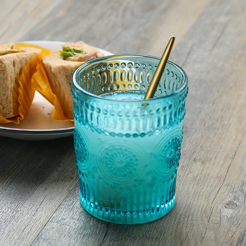 小雏菊玻璃杯 浮雕水杯蓝色水晶太阳花杯子ins风酒杯果汁杯牛奶杯