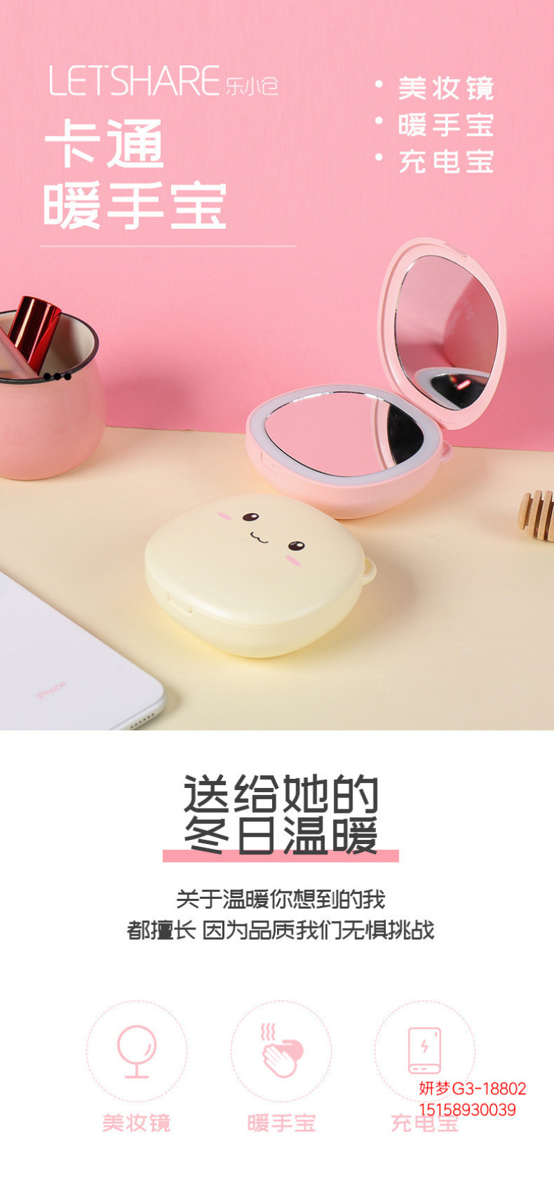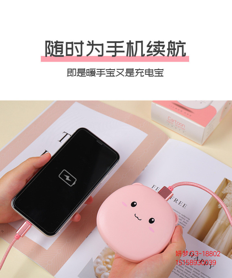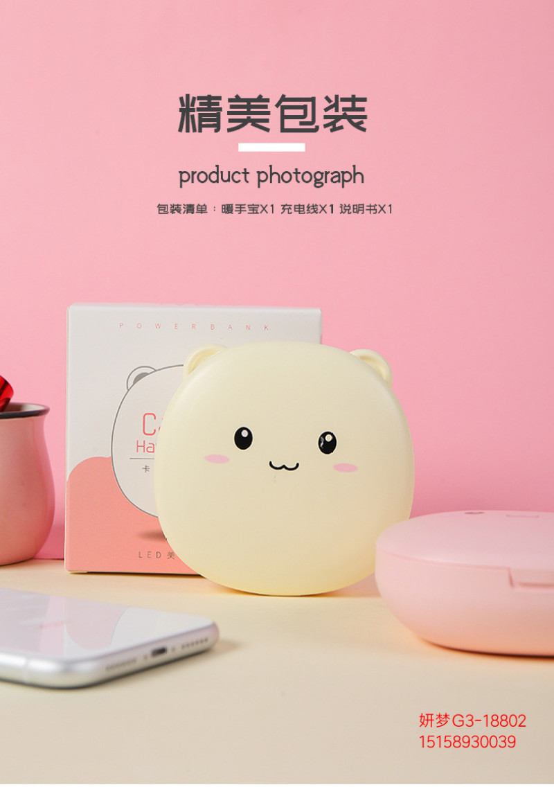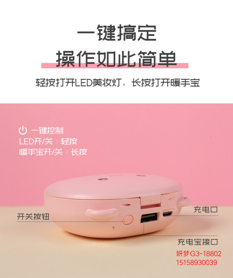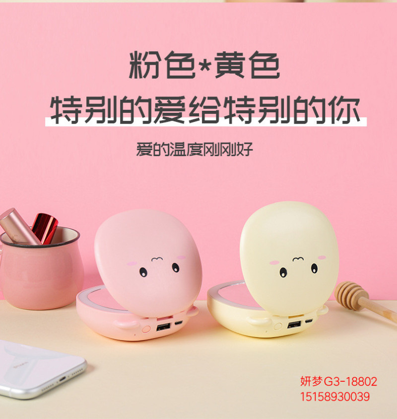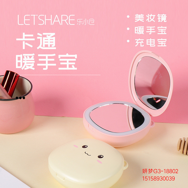 暖手宝充电宝两用二合一随身便携led灯美妆镜卡通可爱迷你usb充电