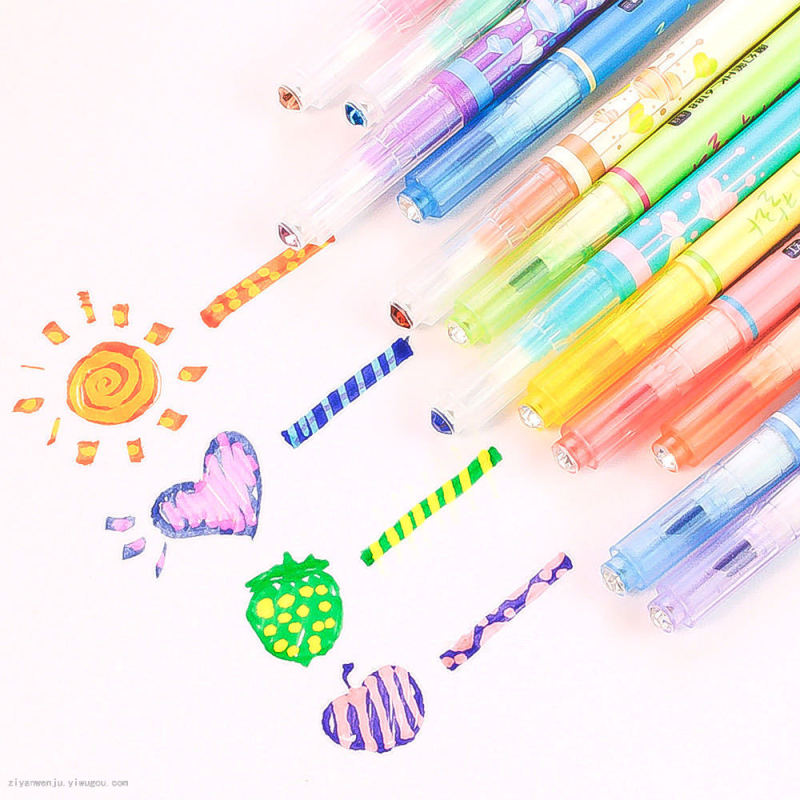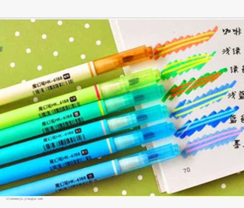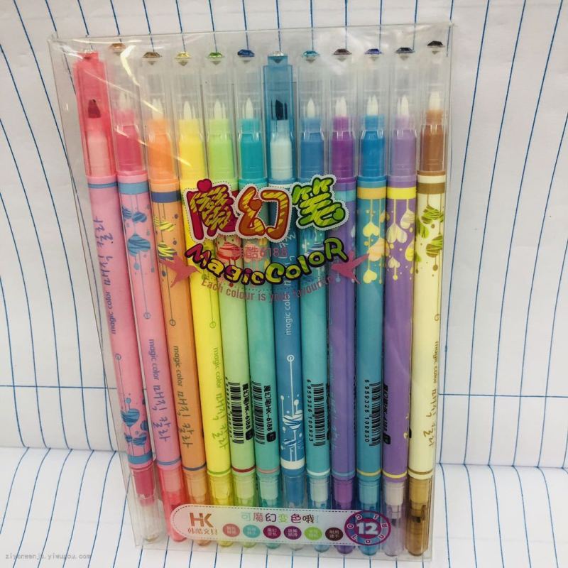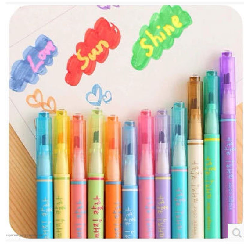 韩酷6188魔幻变色荧光笔双头带钻变色水彩笔重点标记笔