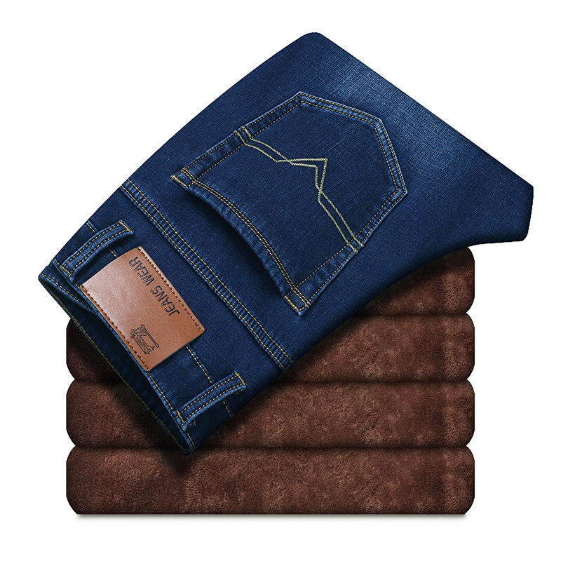 厂家直销冬季加绒加厚牛仔裤男士青年直筒宽松大码商务休闲裤批发