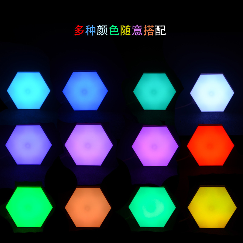 抖音创意RGB触摸感应量子灯蜂窝灯壁灯LED小夜灯拼接组合蜂巢灯