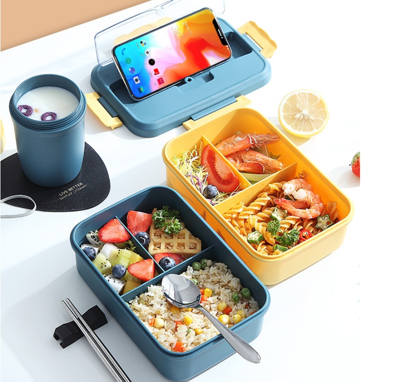 小麦秸秆饭盒韩式便当盒密封学生带盖分格可加热保鲜餐盒