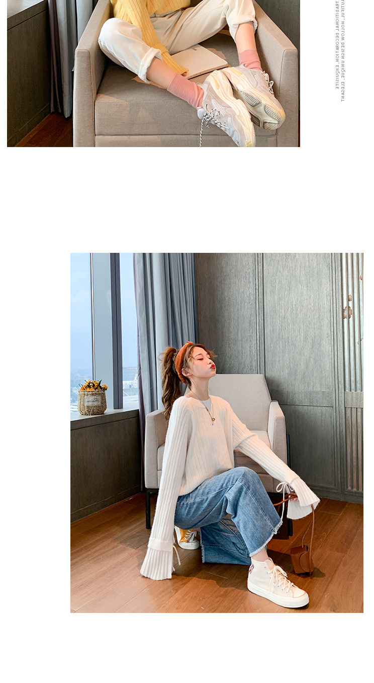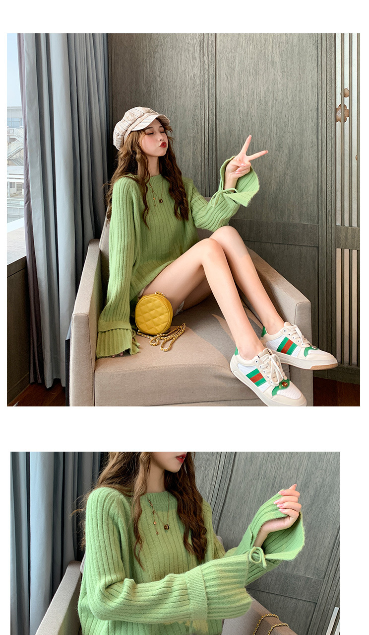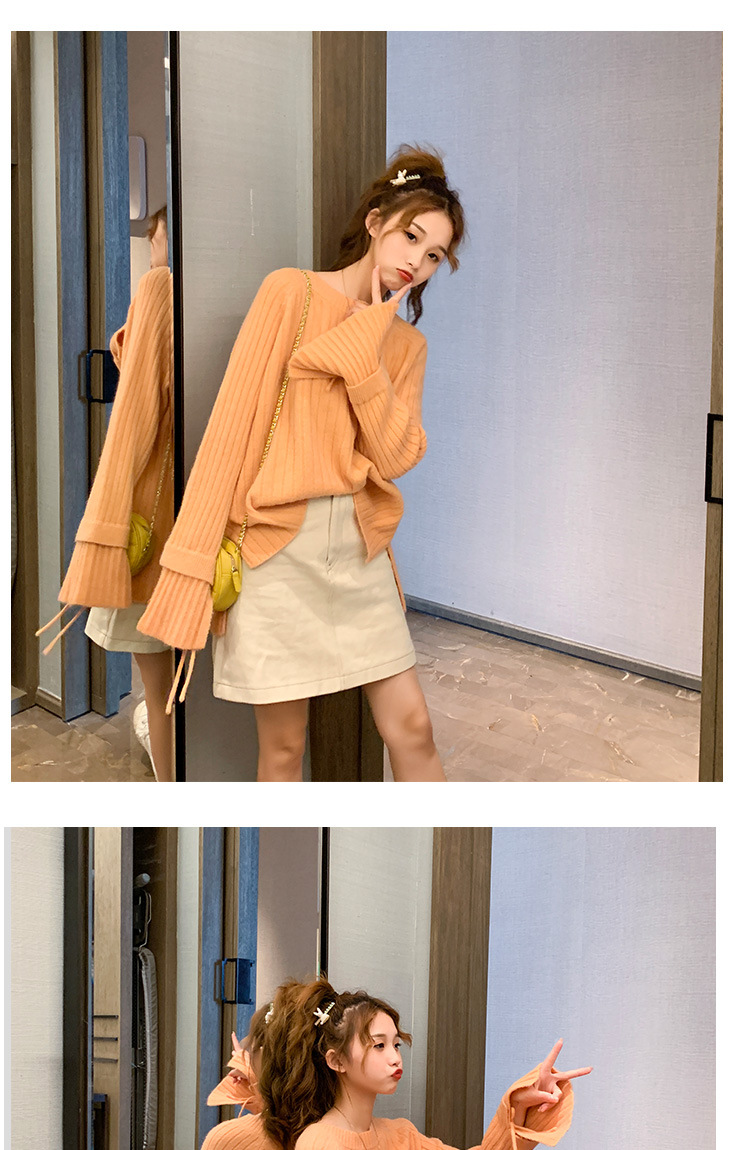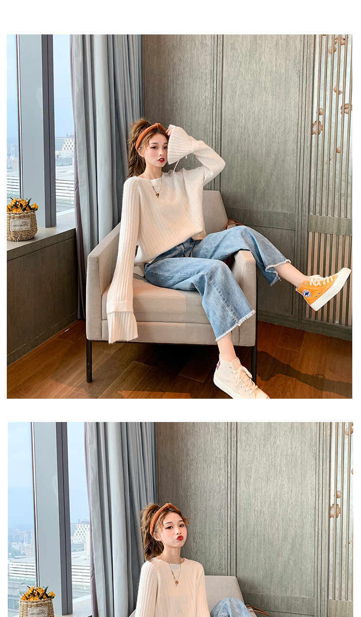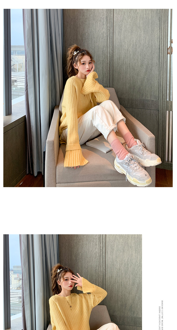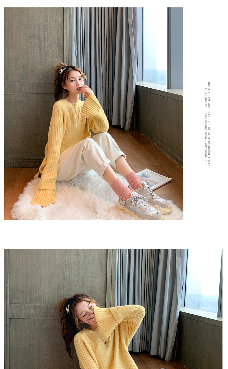 很仙的喇叭袖套头毛衣女2020秋冬新款宽松纯色圆领针织衫女上衣