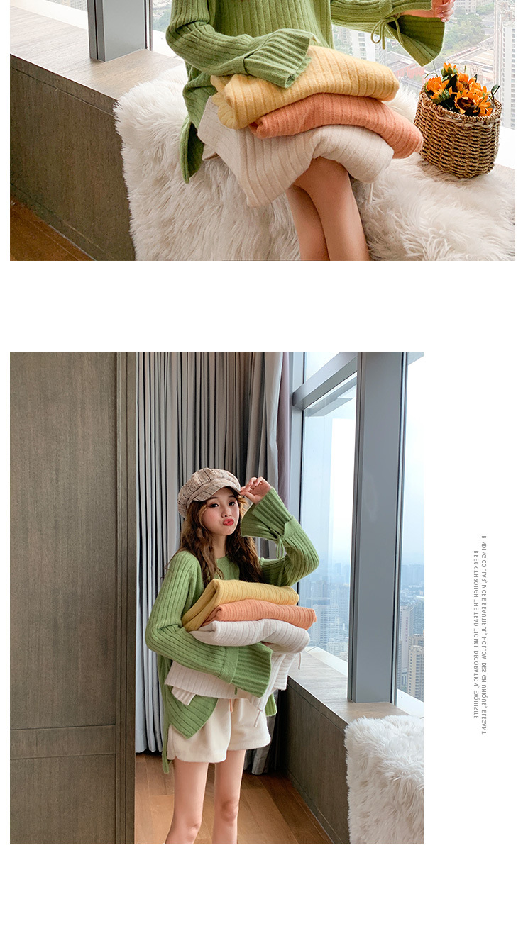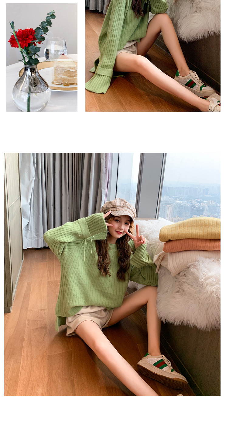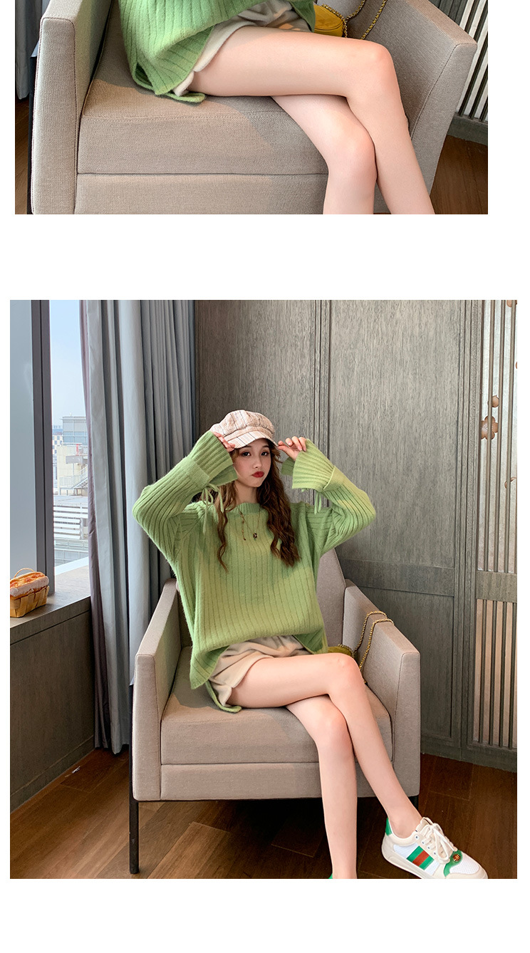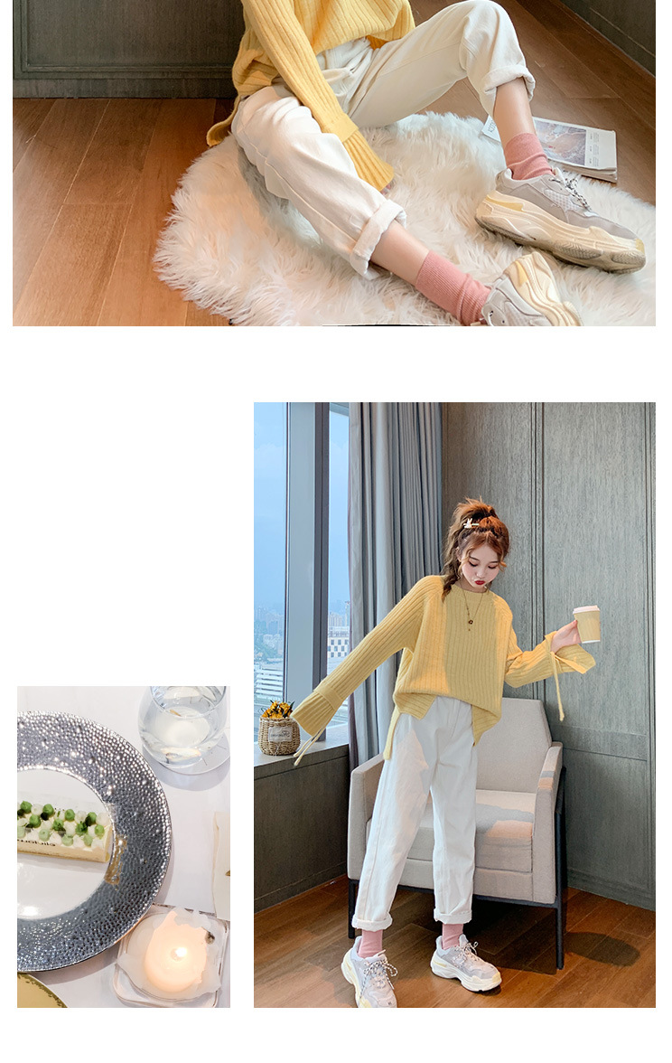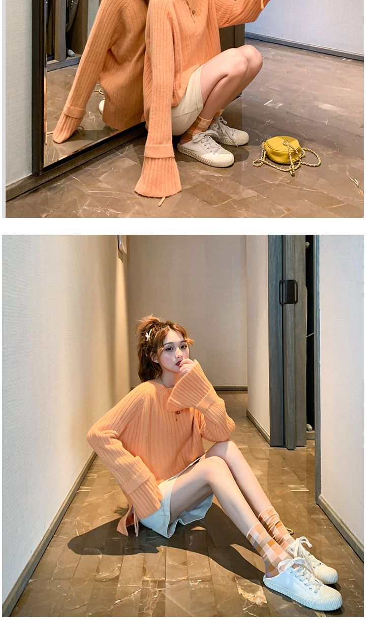 很仙的喇叭袖套头毛衣女2020秋冬新款宽松纯色圆领针织衫女上衣