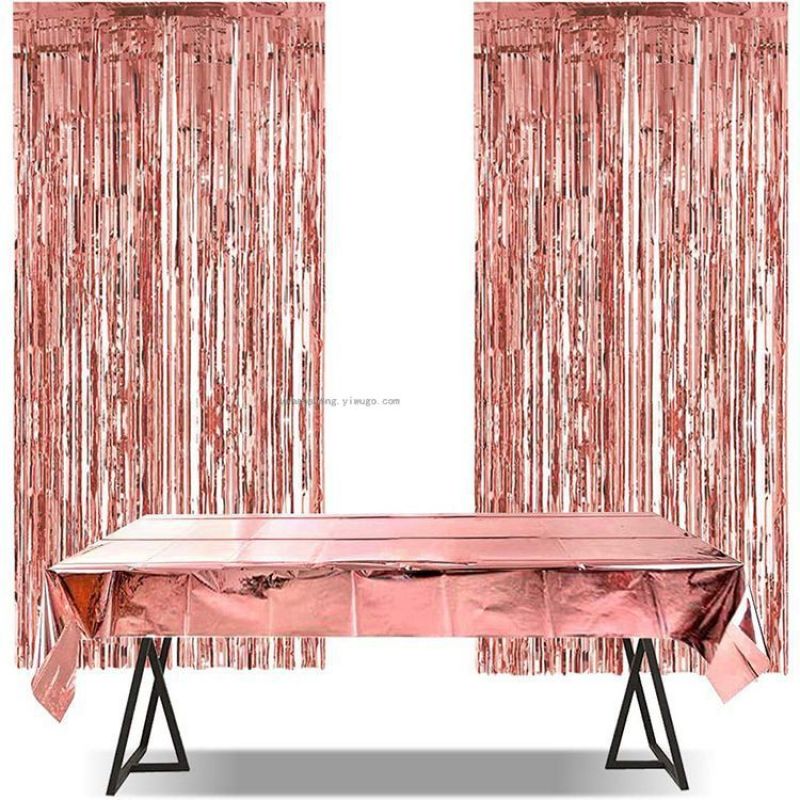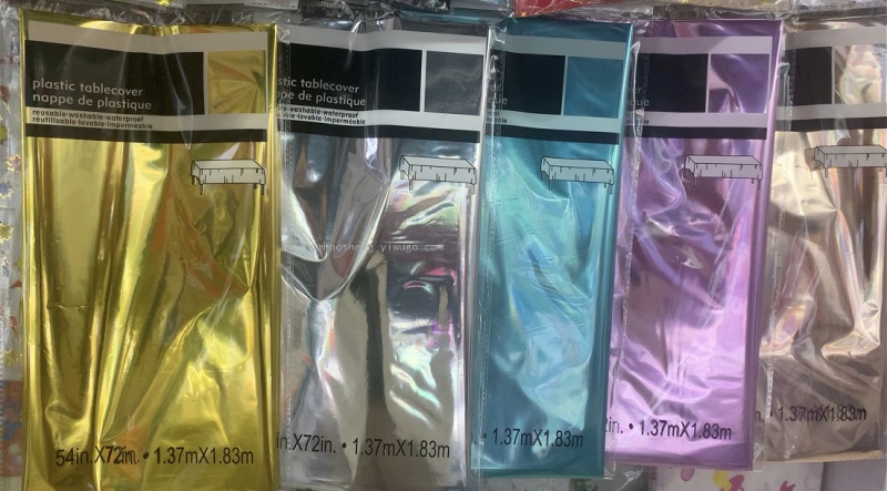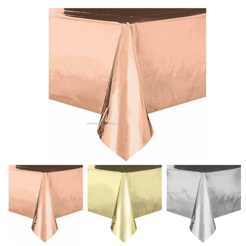 亚马逊热消金色银色玫瑰金蓝色绿色铝膜桌一次性派对用品桌布