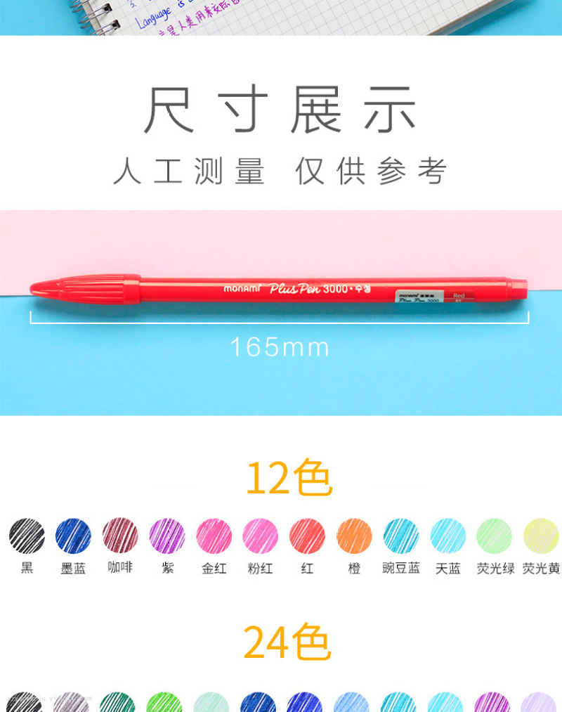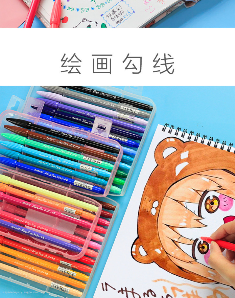 monami3000慕娜美水彩笔套装彩色纤维头中性笔水彩笔36色勾线笔