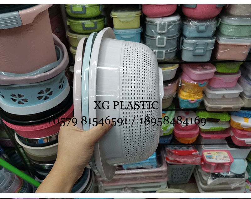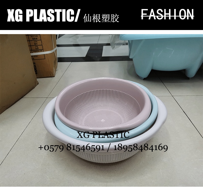 双耳米筛时尚厨房收纳篮洗菜篮洗米篮水果篮塑料简约圆形沥水篮