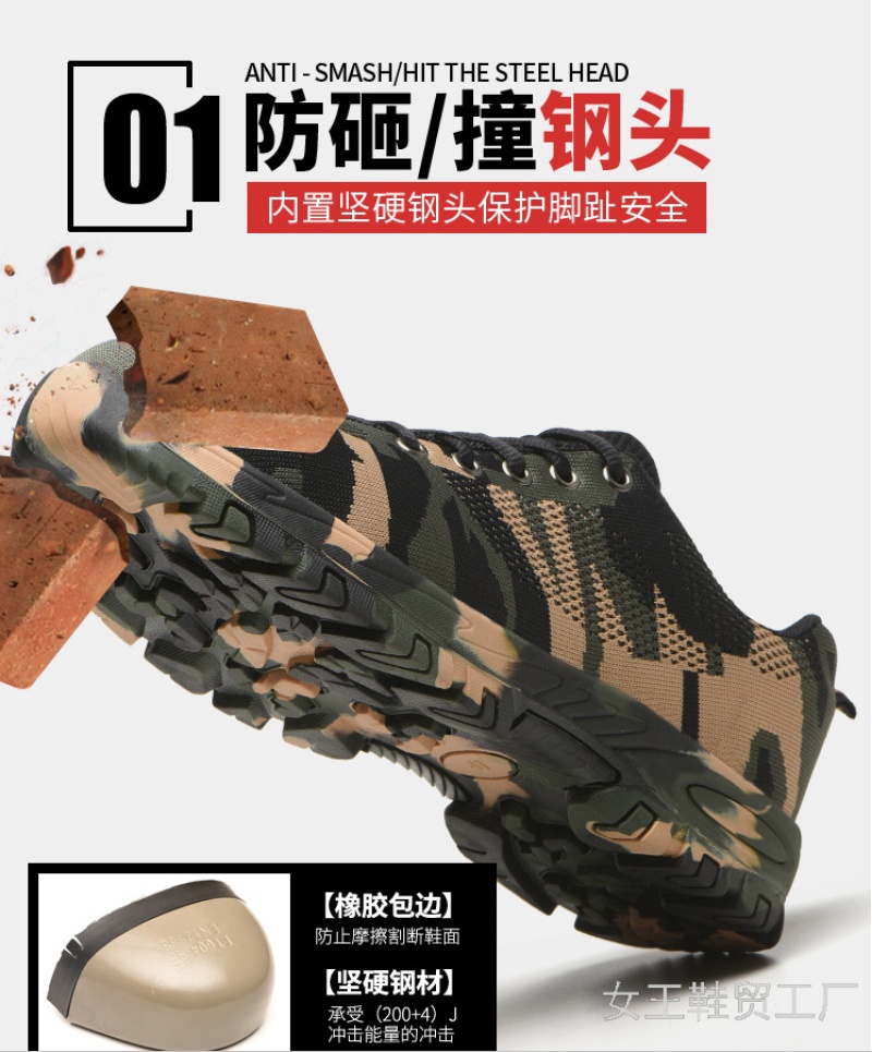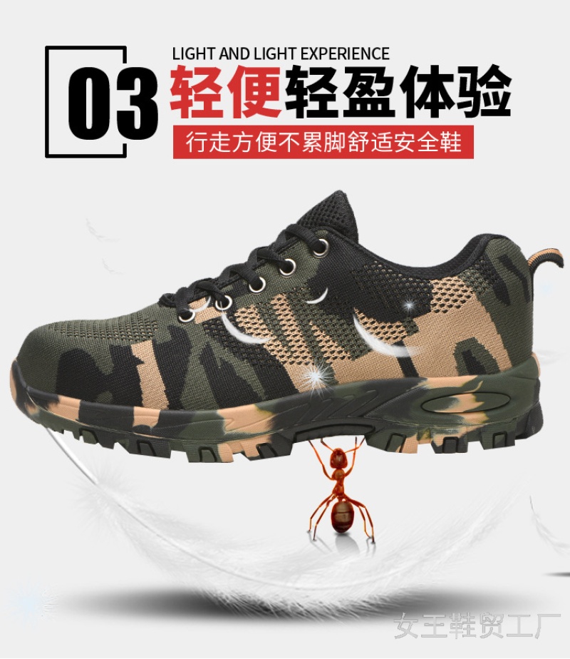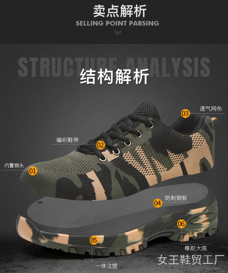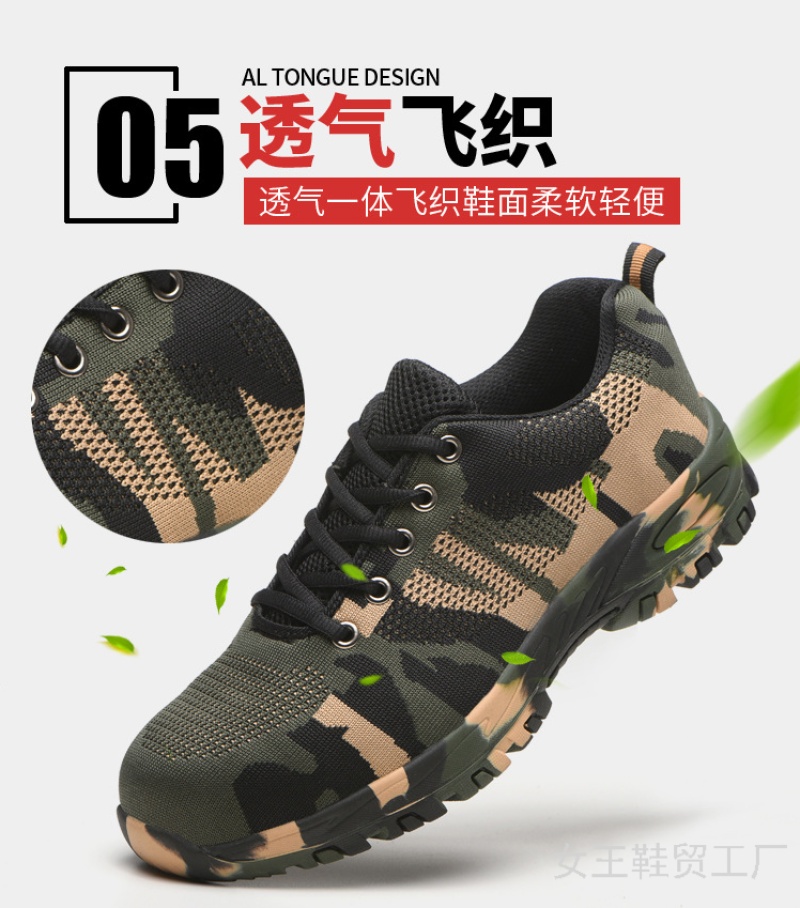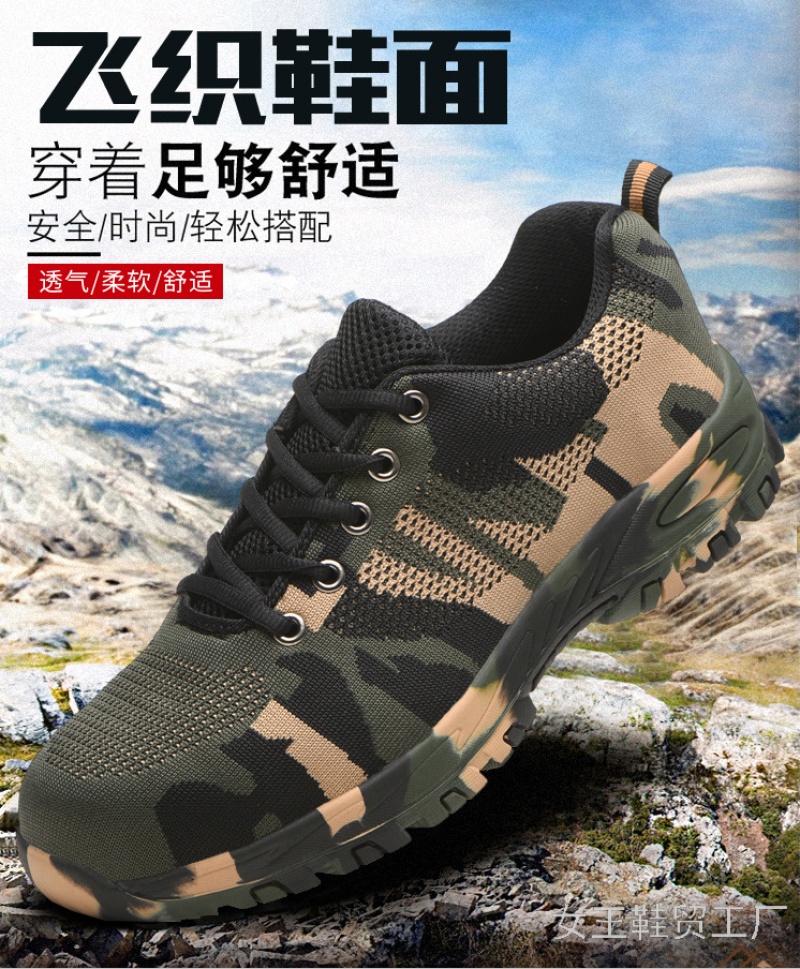时尚飞织透气迷彩男士安全鞋工地劳保男鞋men safety shoes