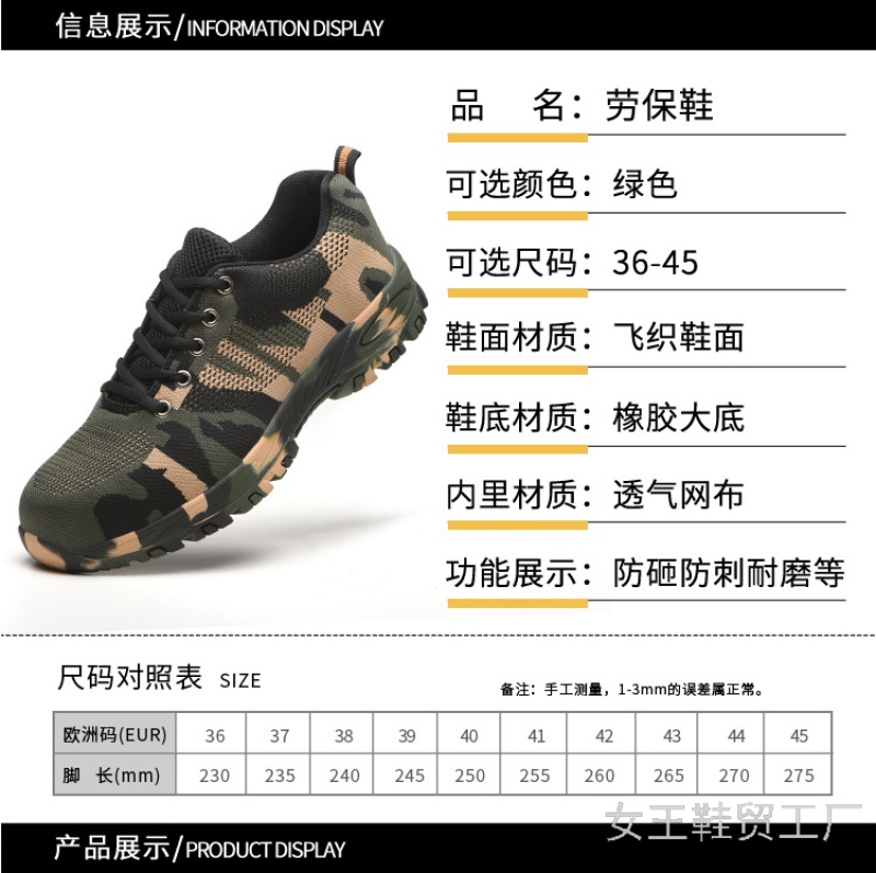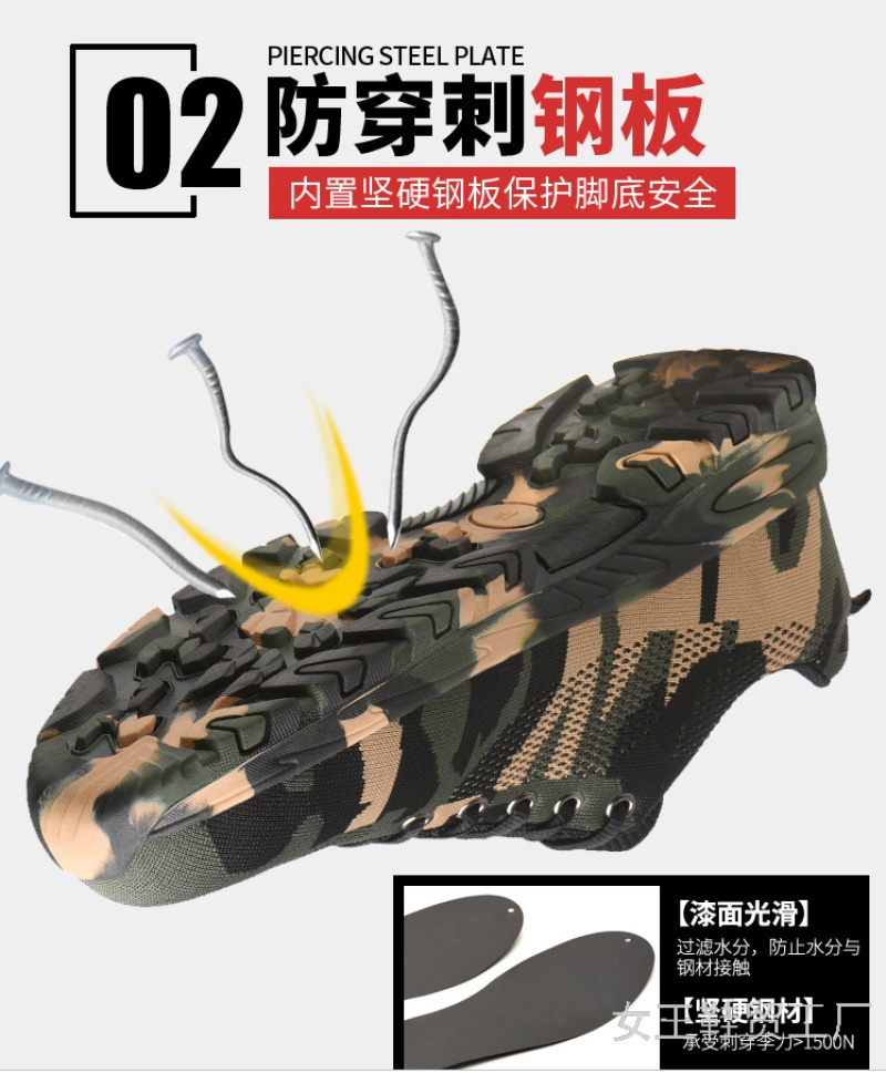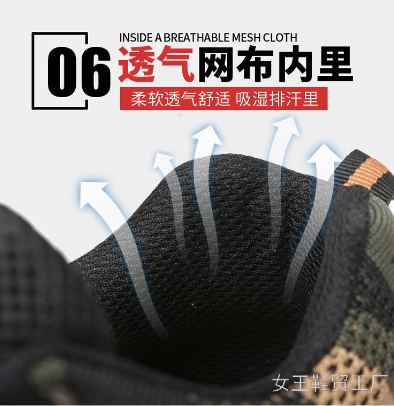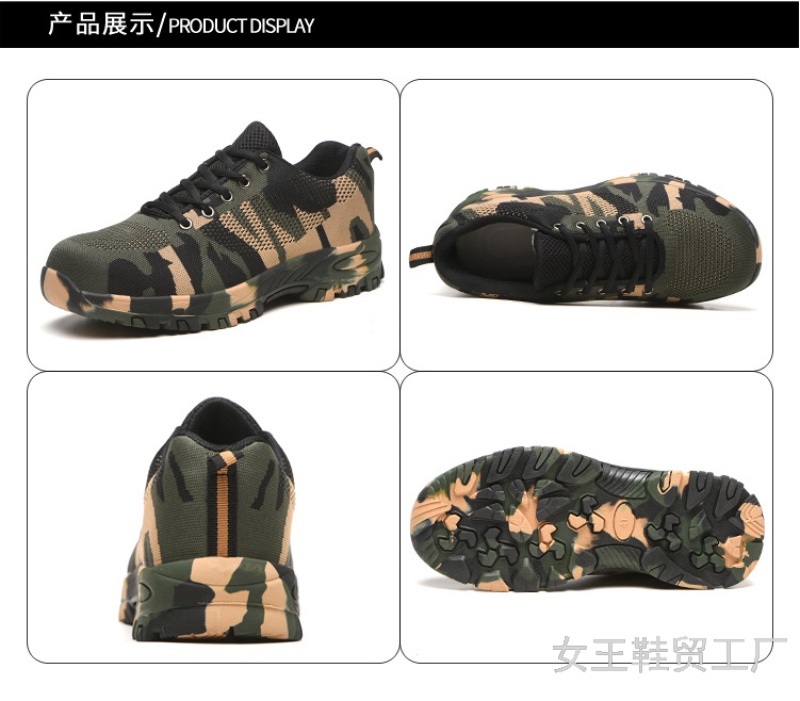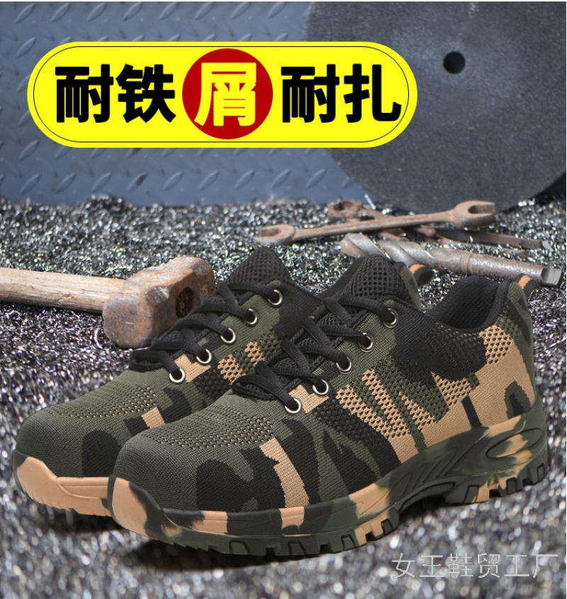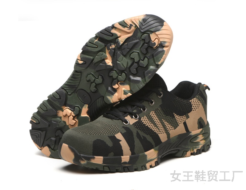 时尚飞织透气迷彩男士安全鞋工地劳保男鞋men safety shoes
