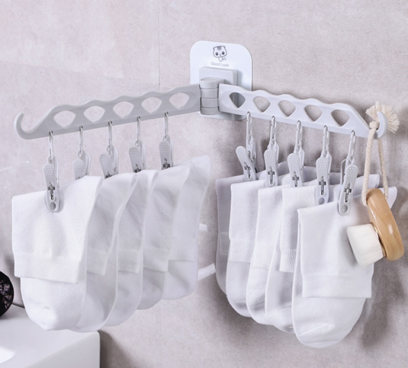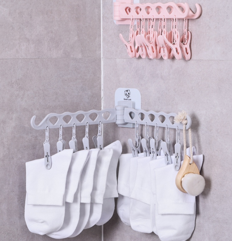 多功能衣架粘壁挂式晒袜子夹子家用塑料袜子架袜架夹内衣架晾衣架