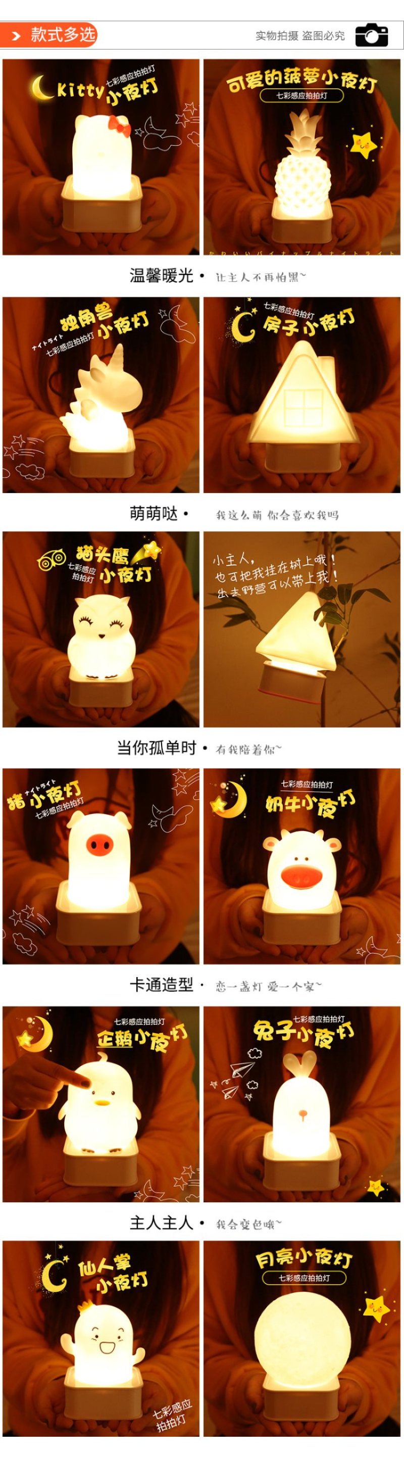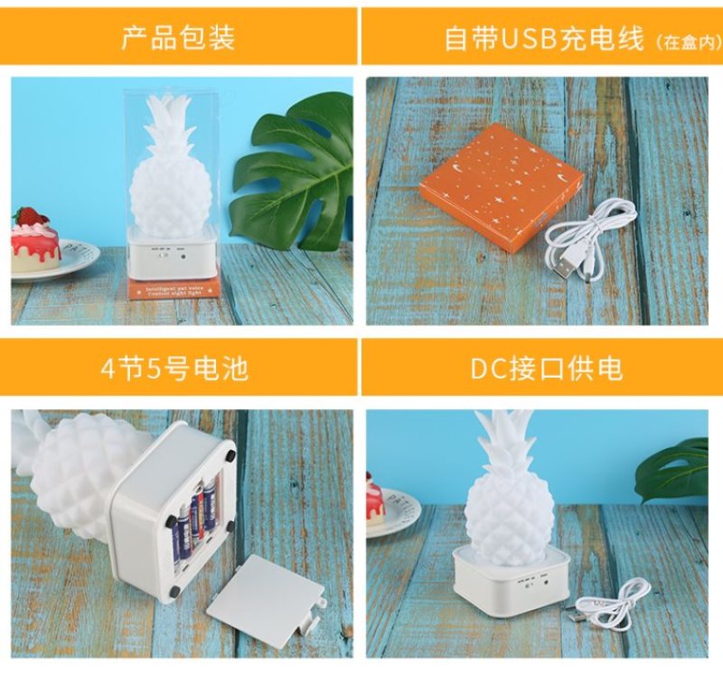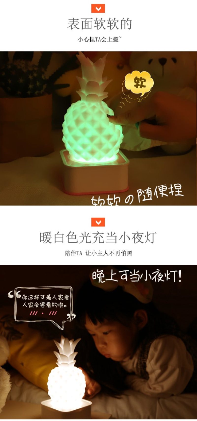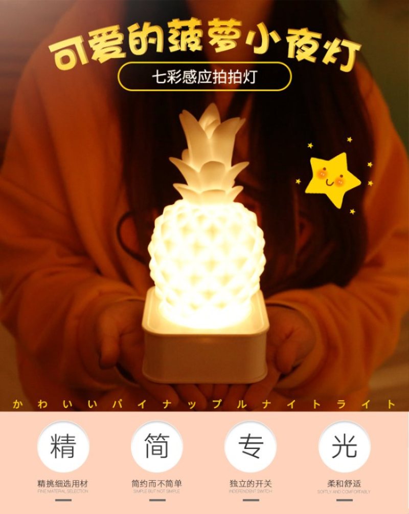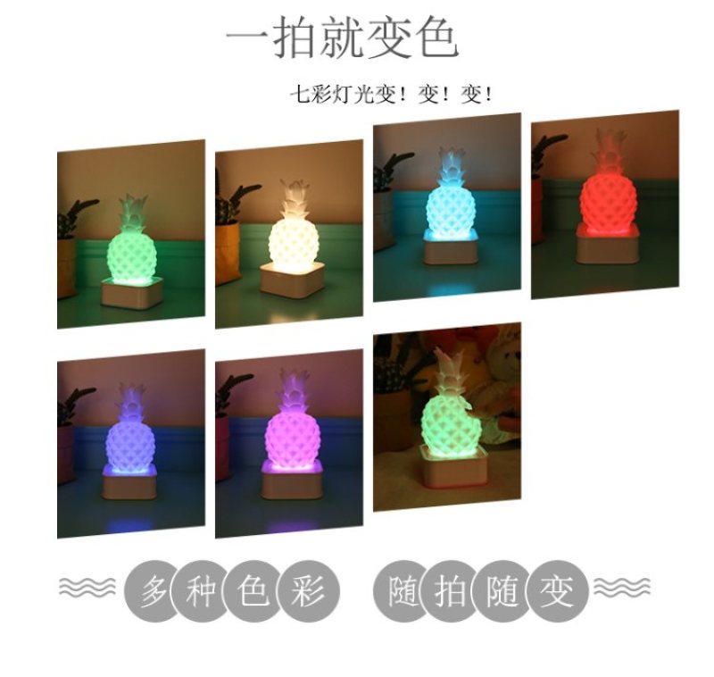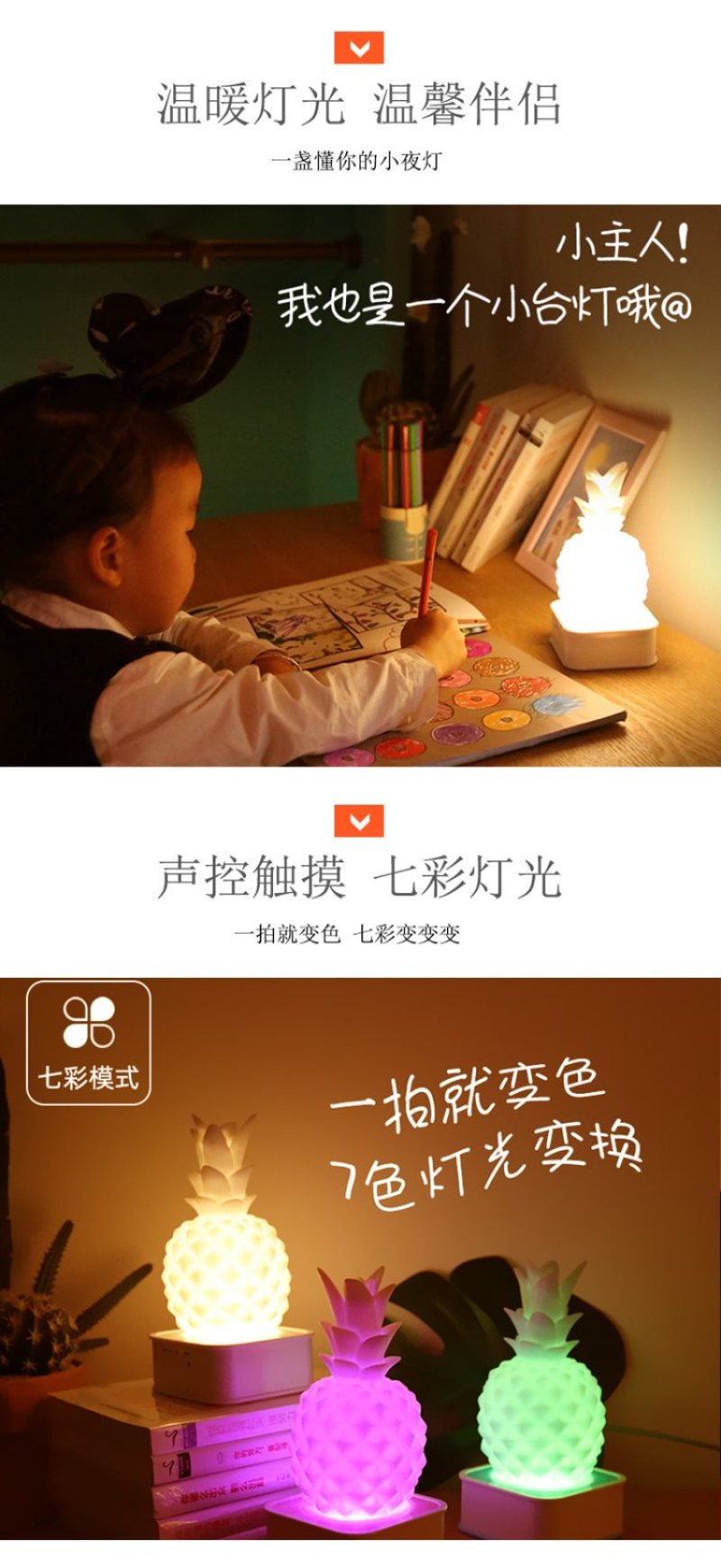 卧室氛围卡通声控床头小夜灯 宝宝房间菠萝小夜灯 七彩感应拍拍灯