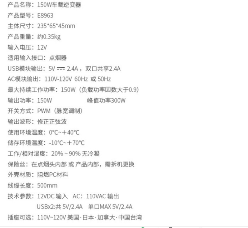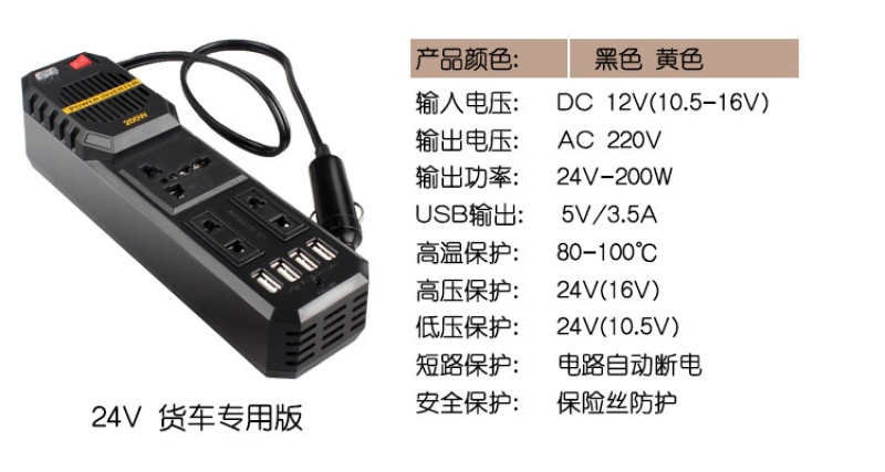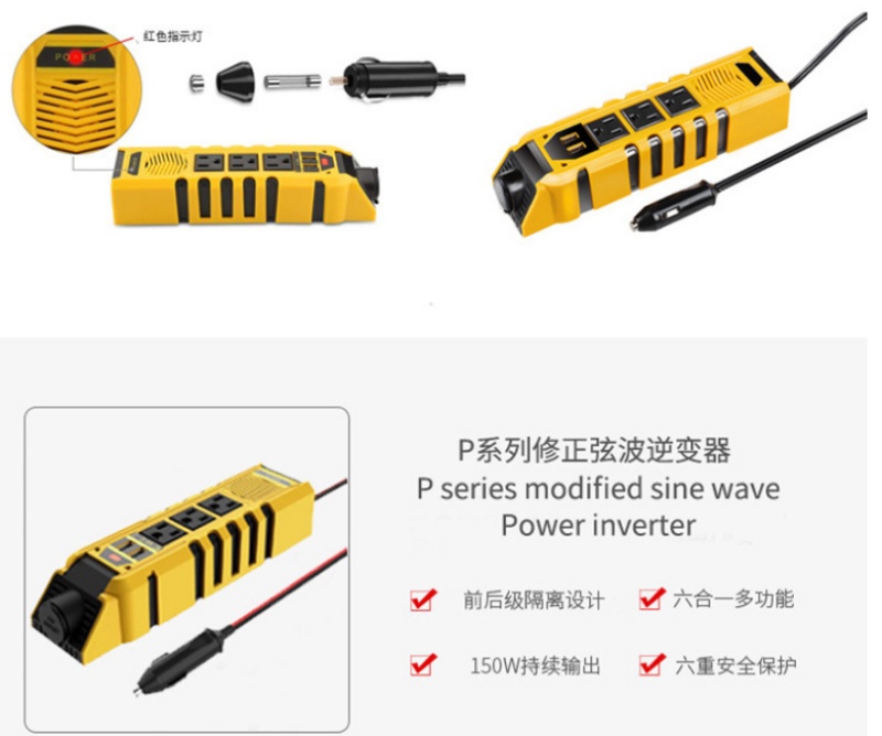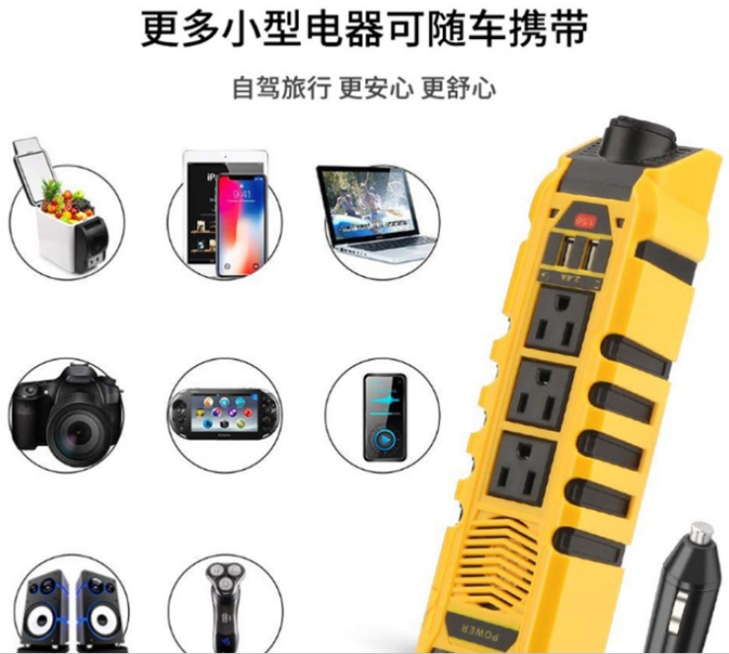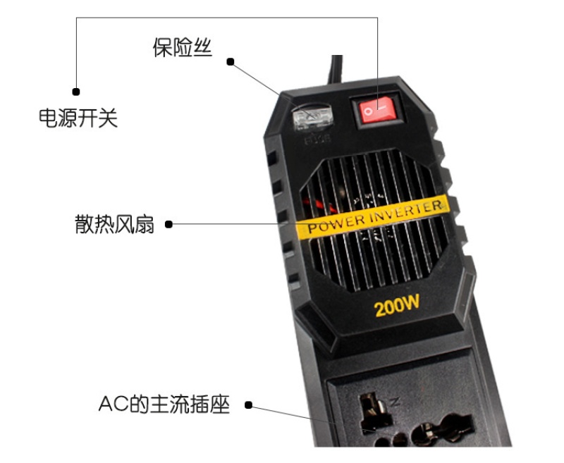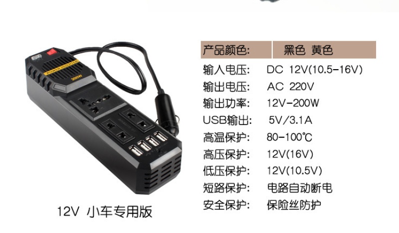 200W迷你车载逆变器12V转220V新品户外汽配类畅销逆变器转换器