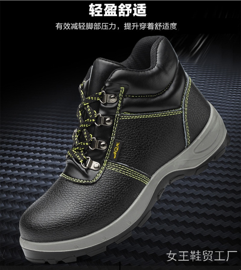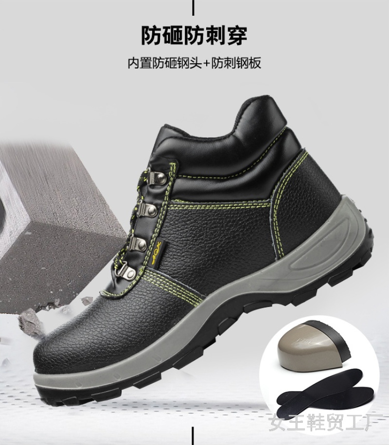 男鞋防砸防刺穿二层压花牛皮劳保鞋建筑工地适用安全鞋work shoe