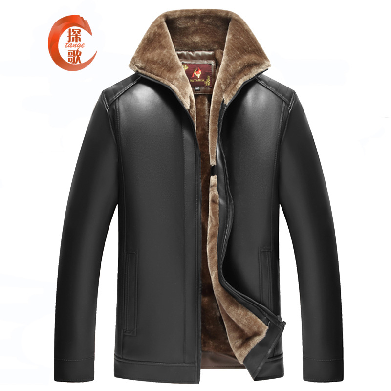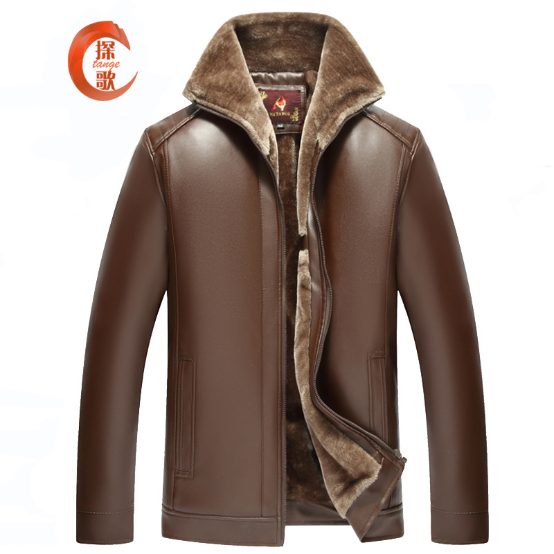秋冬新款中老年皮衣皮毛一体皮夹克加绒加厚爸爸装pu皮外套