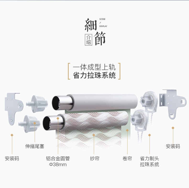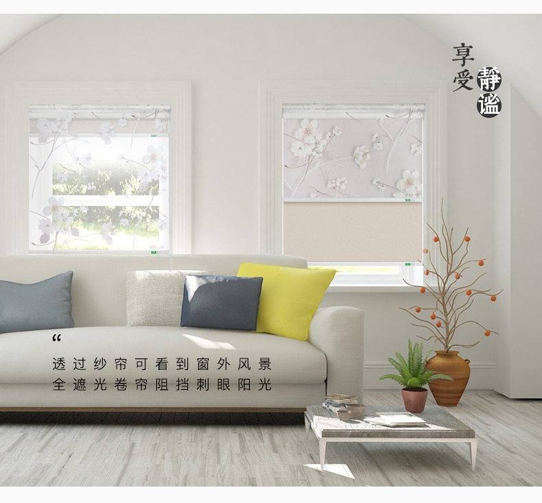 日夜帘双层卷帘遮光卧室书房办公室手拉电动升降卷拉式窗帘