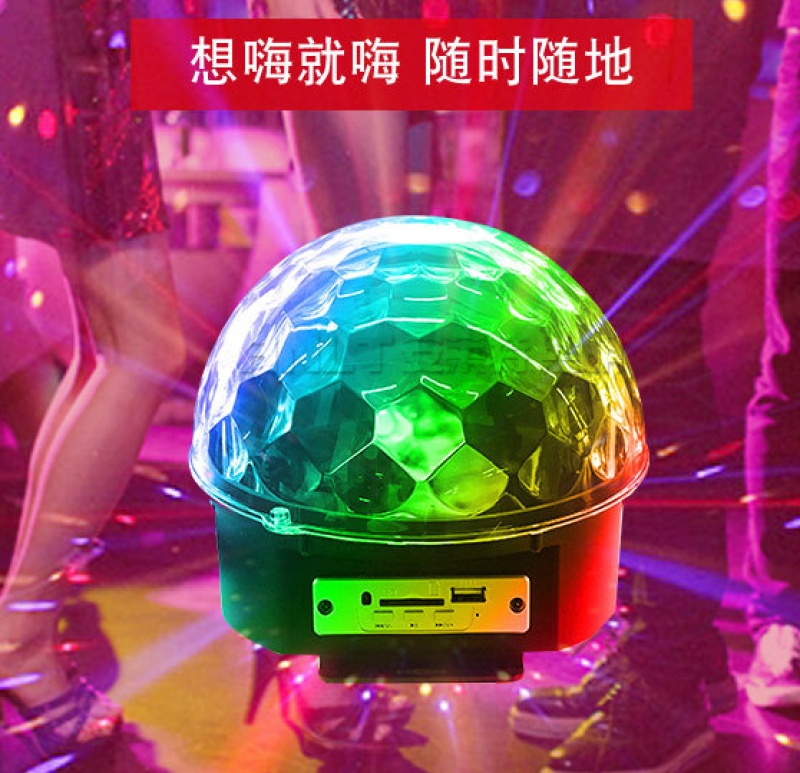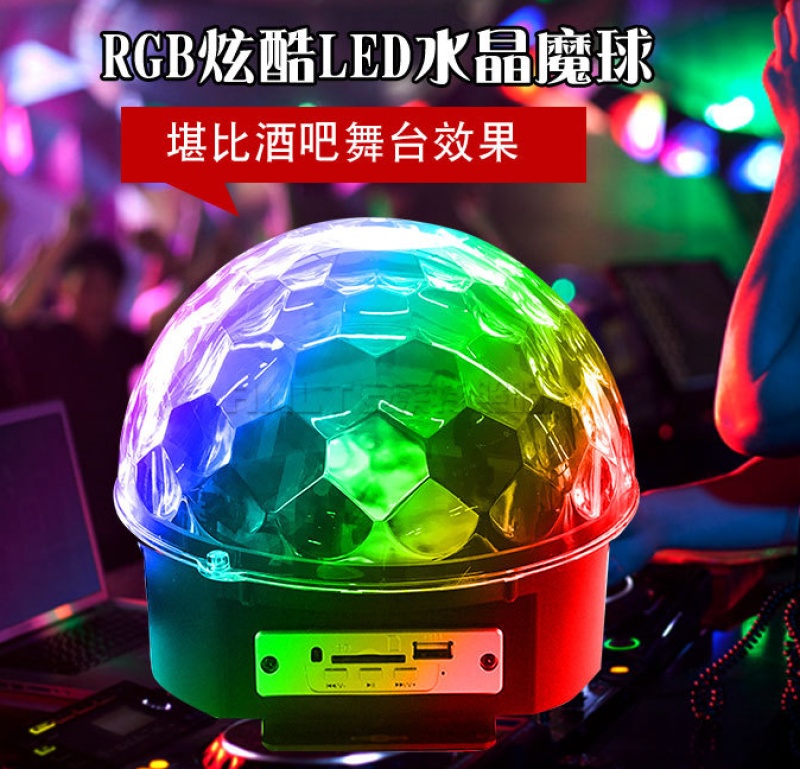 水晶魔球舞台灯 蓝牙音箱USB插卡led七彩旋转灯 mp3水晶大魔球灯