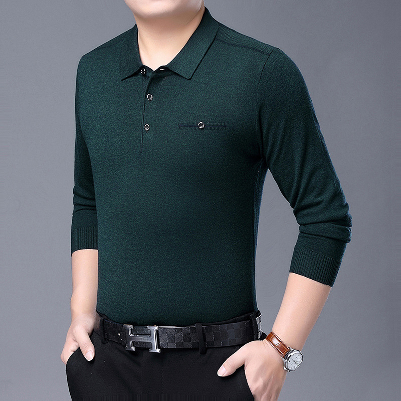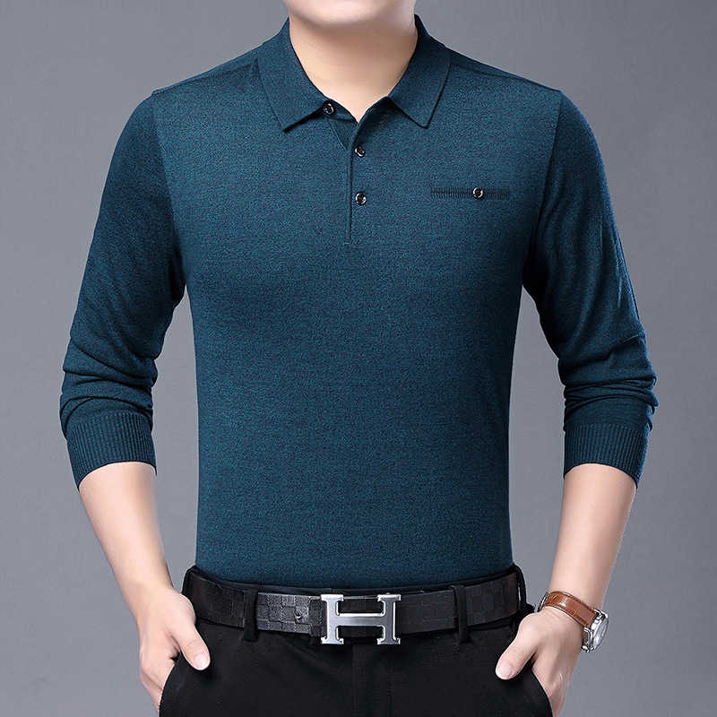 秋装新款中年男士长袖t恤翻领纯色中老年爸爸装针织体恤批发