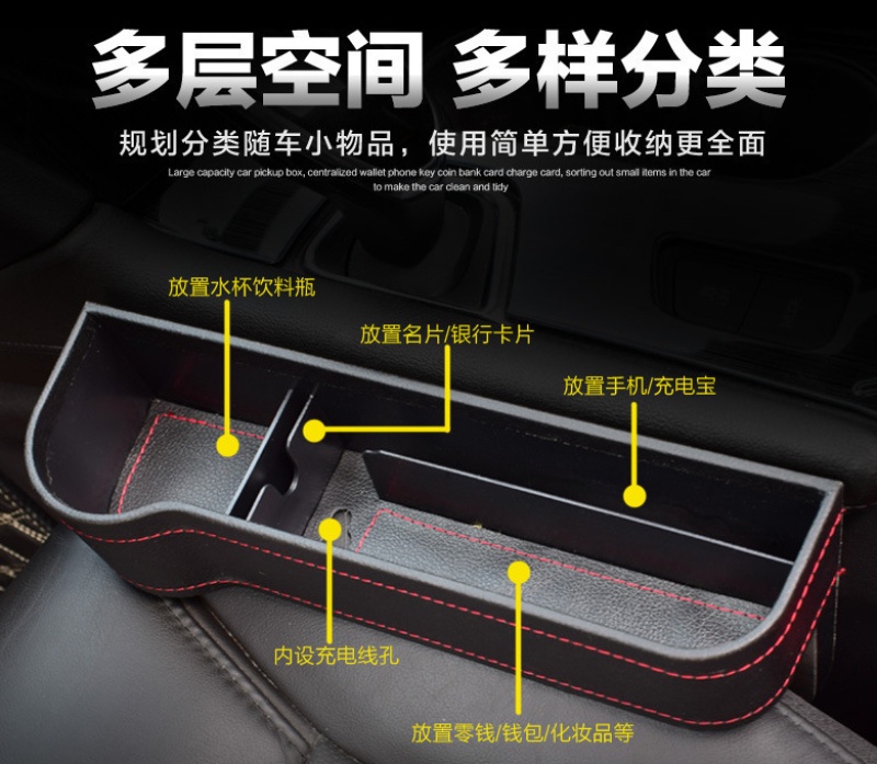 车载座椅缝隙收纳盒 车用储物多功能夹缝盒 杂物水杯架汽车缝隙盒