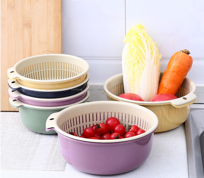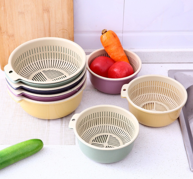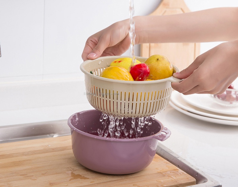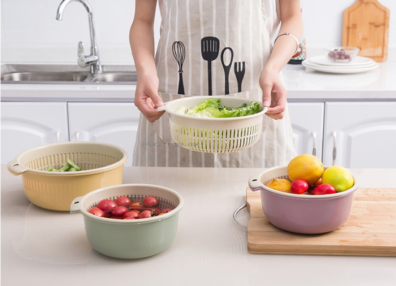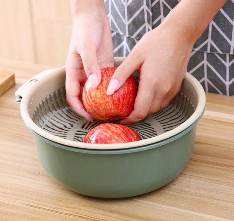 厨房双层水果蔬菜塑料撞色沥水篮厨房塑料收纳洗菜沥水篮