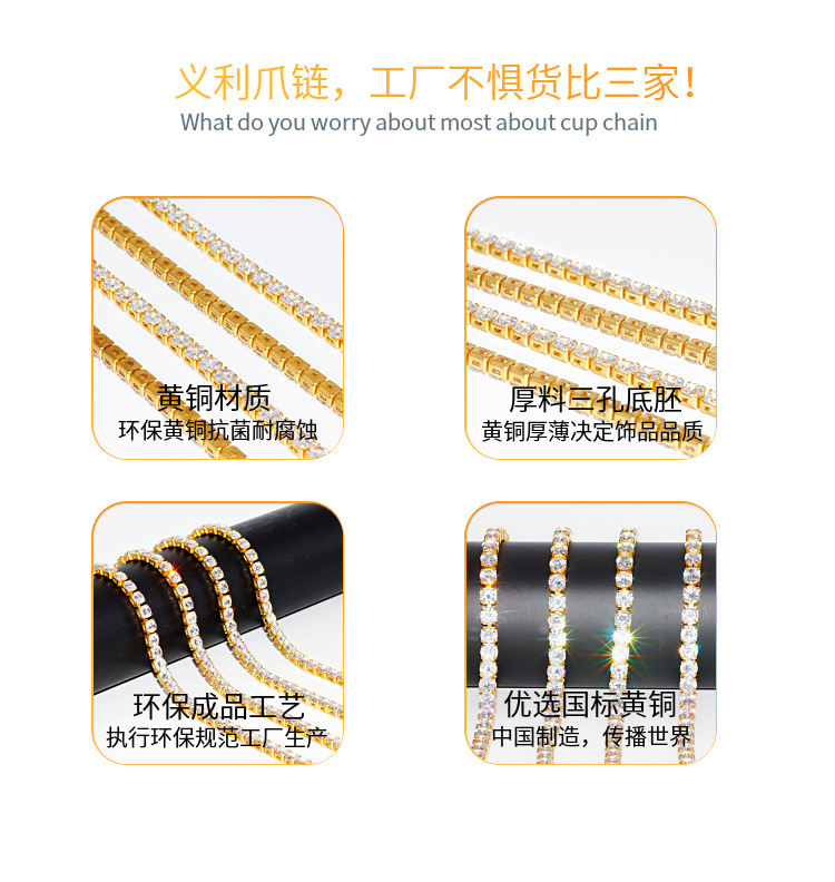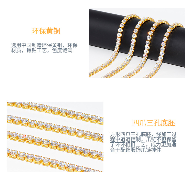 【实力工厂】1.5mm锆石爪链 满镶彩宝手工链条铜银饰品鞋包辅料