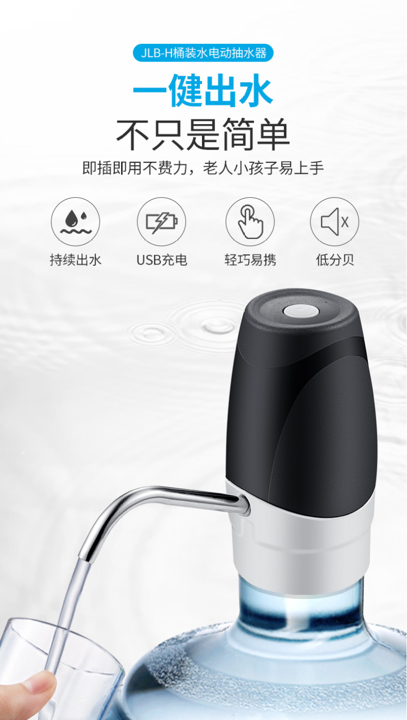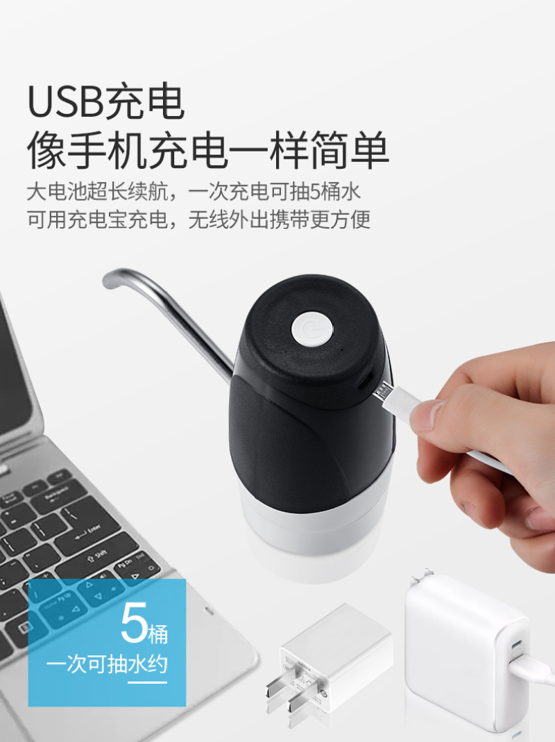 桶装水电动抽水器便携饮水机桶装电动饮水机无线充电抽水智能抽水