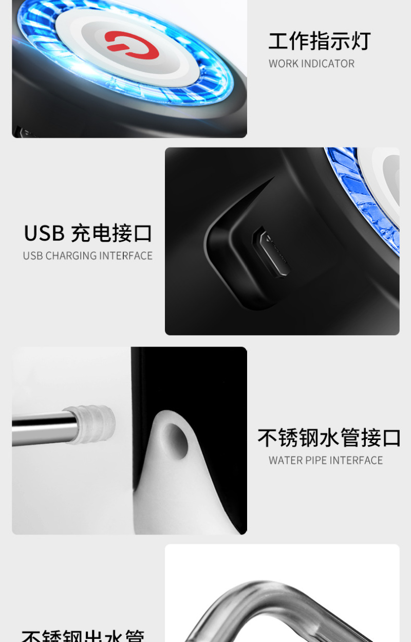 桶装水电动抽水器便携饮水机桶装电动饮水机无线充电抽水智能抽水