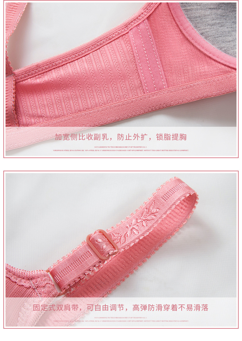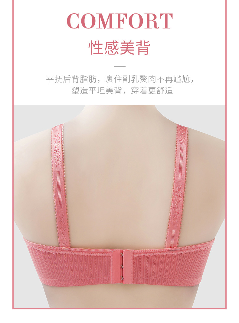 娇蓉彩时尚女士无钢圈大妈文胸蕾丝性感竹炭舒适里杯聚拢侧收内衣