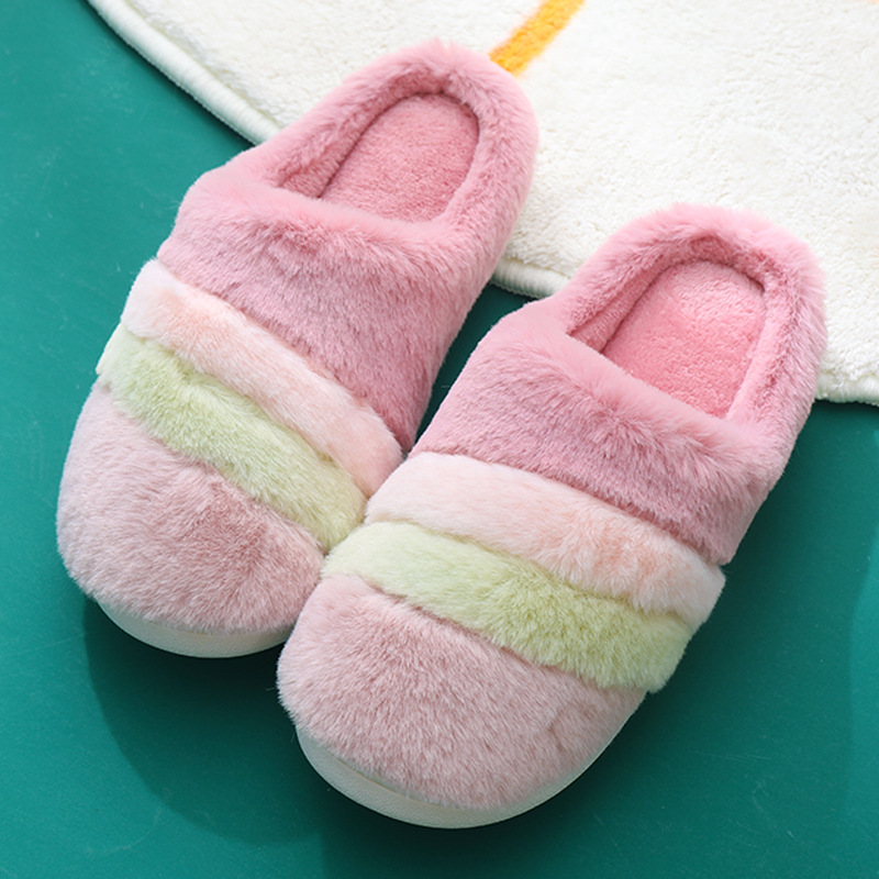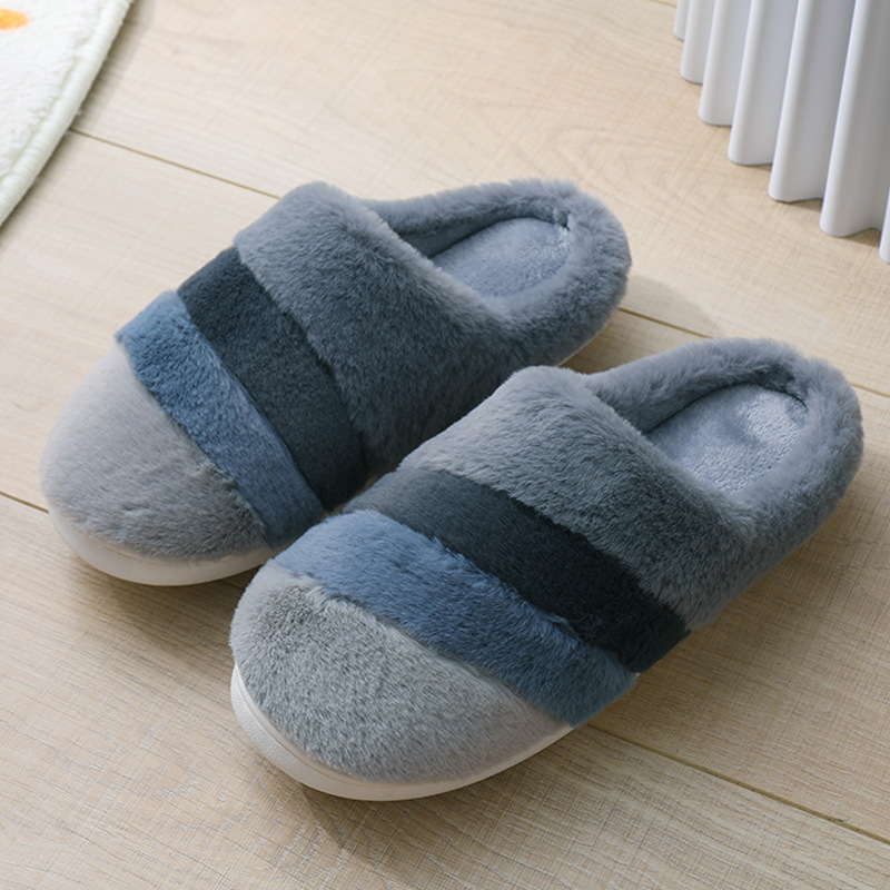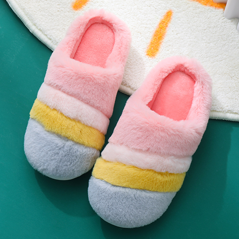 棉拖鞋冬季可爱拼色加厚防滑室内家居保暖月子鞋情侣毛绒拖鞋男士