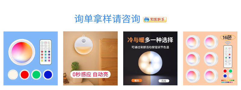 外贸专供创意款16色led小夜灯 快速频闪拍拍灯彩光遥控橱柜灯