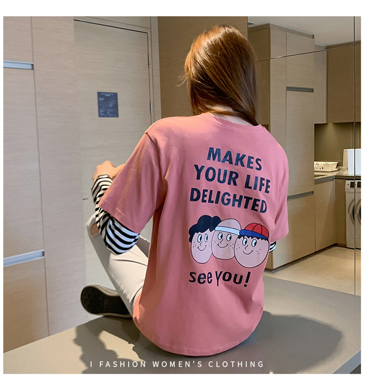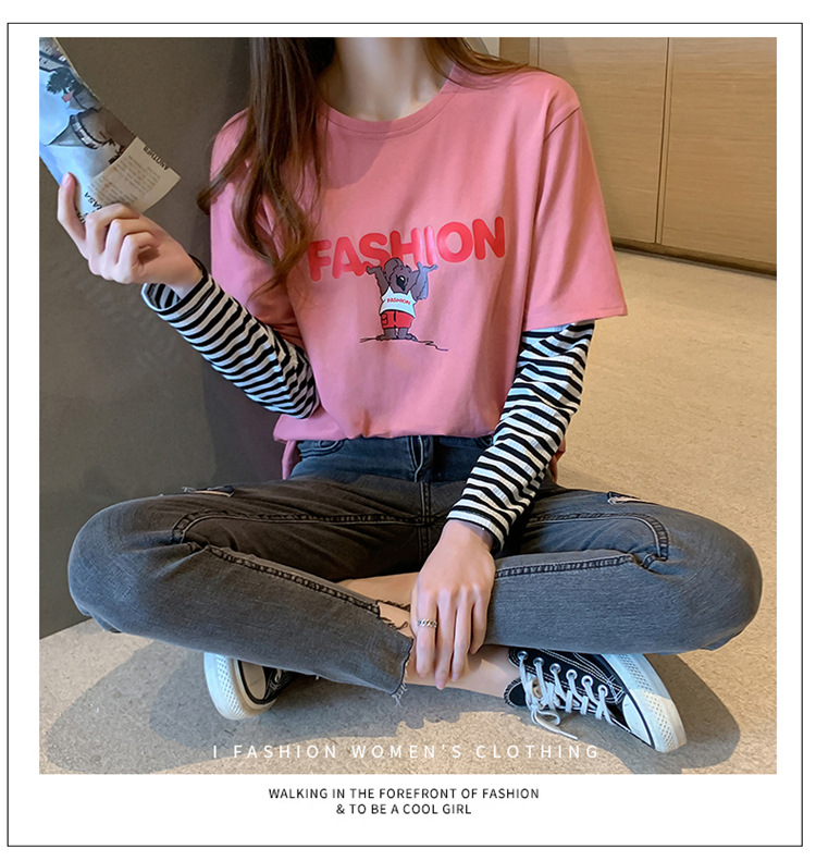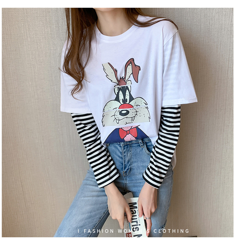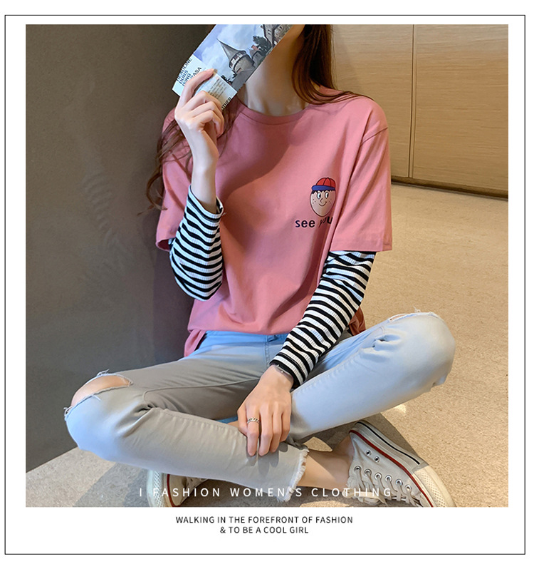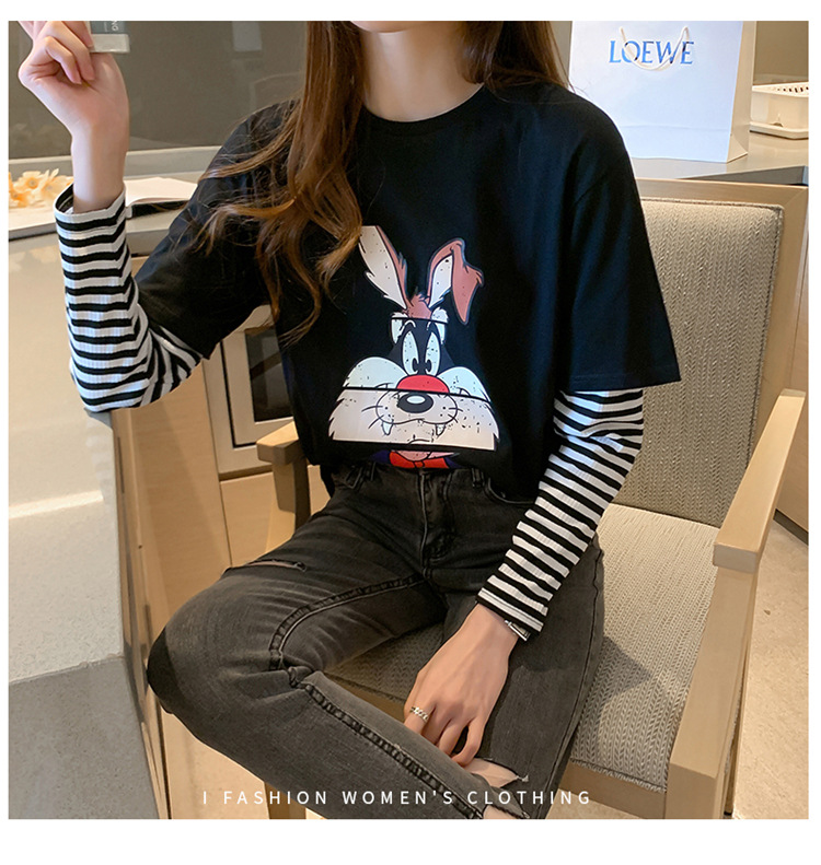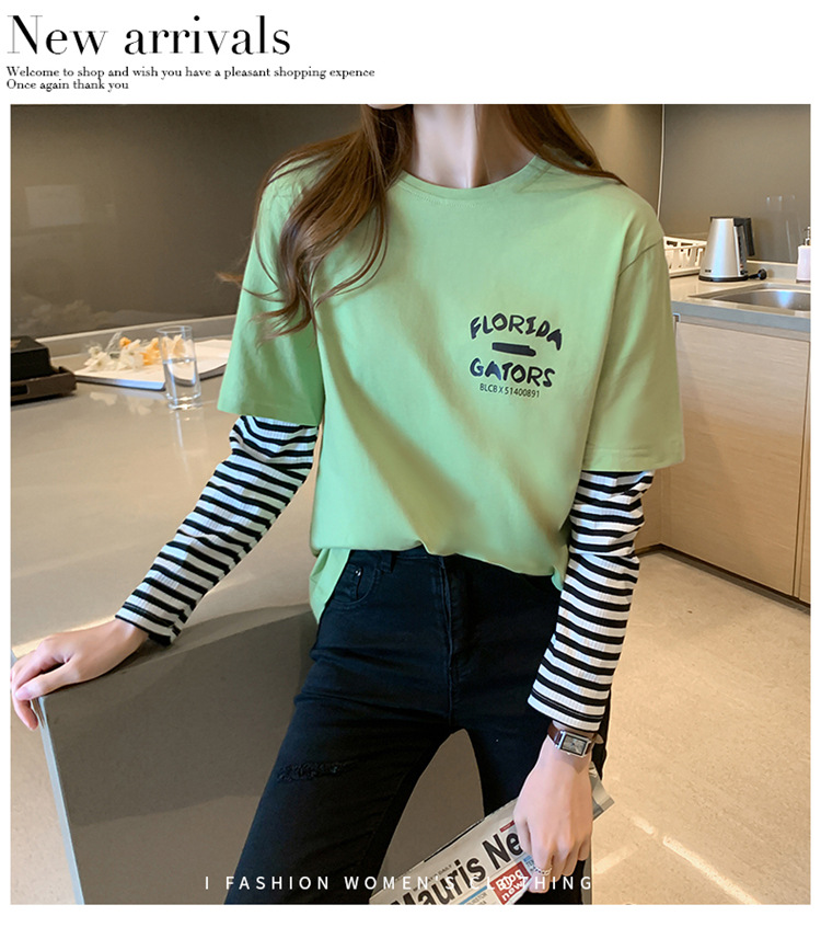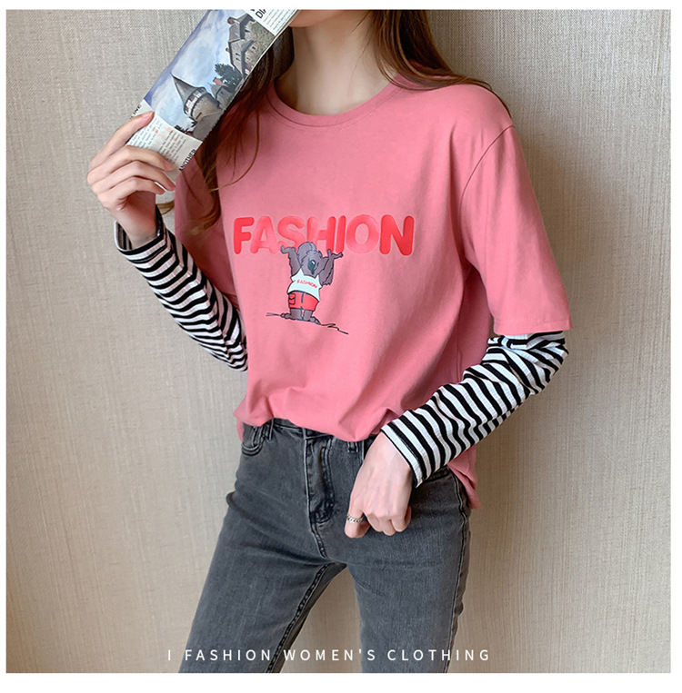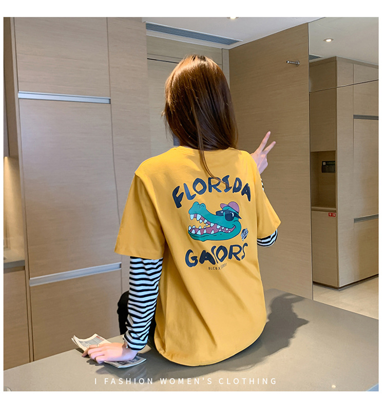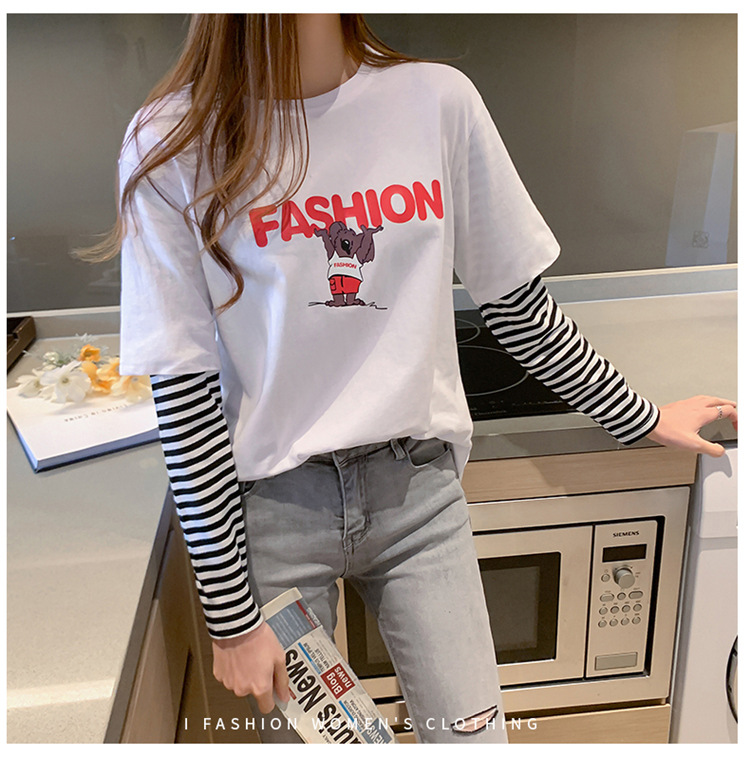 《秋多款拼》2020秋季新款韩版假两件印花学生上衣潮