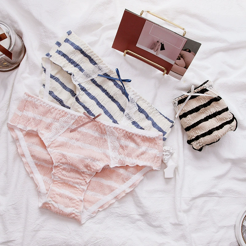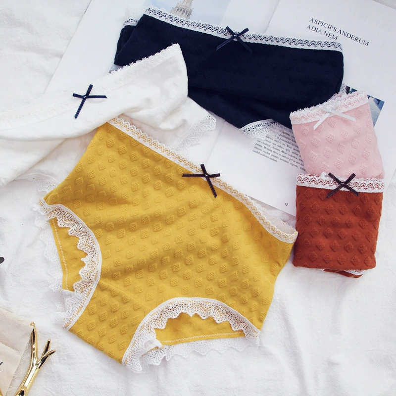 2020春款女式内裤缎面少女爱心女士内裤透气中腰日系女三角裤批发