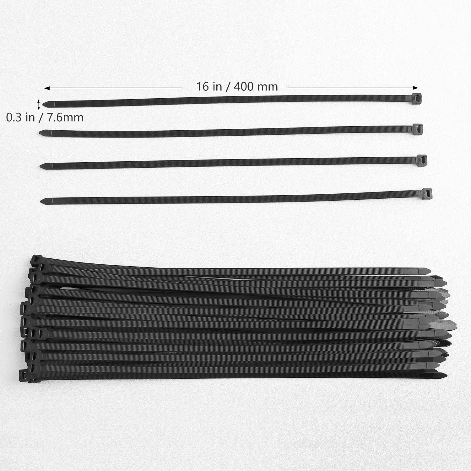 16英寸白色拉链扎带 100 包180磅强度,尼龙电缆扎带,螺栓滴管。