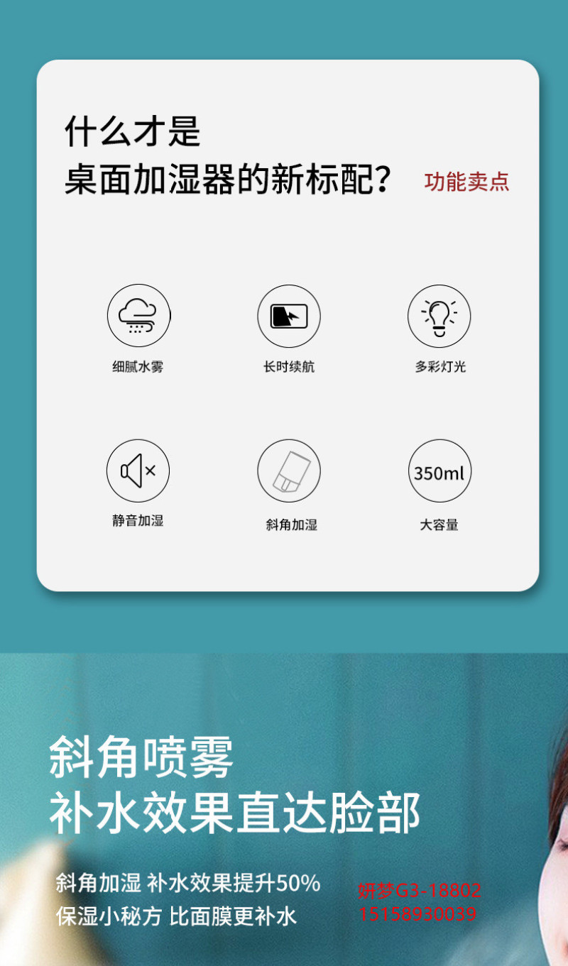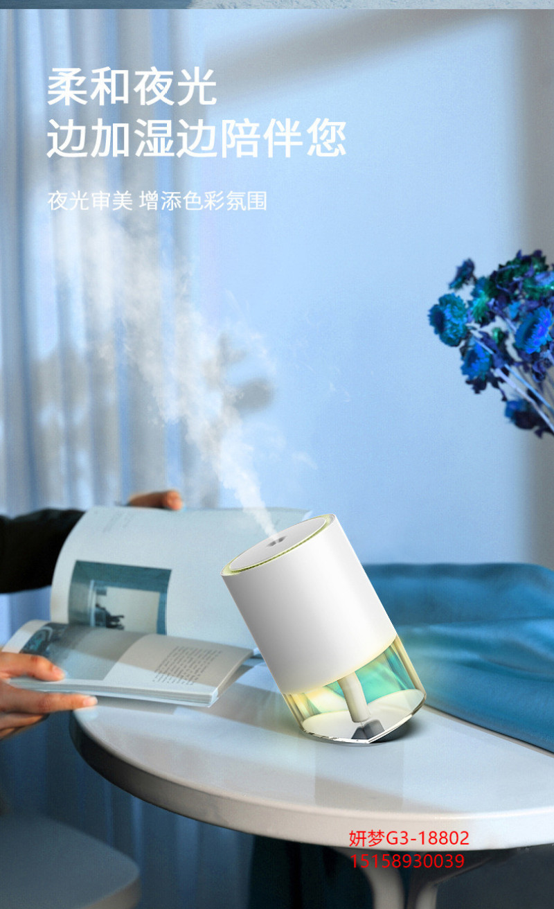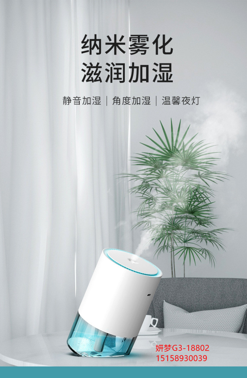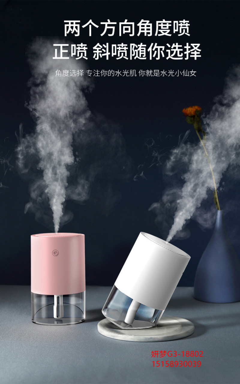 斜喷加湿器 带电池usb加湿器 迷你便携桌面夜灯补水仪 空调房补水