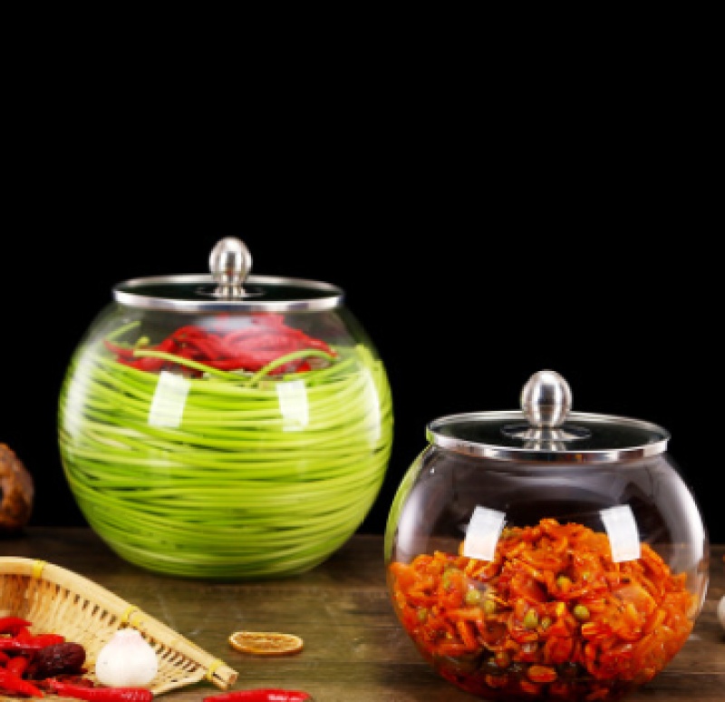 家用透明圆形泡菜坛储物罐20斤大号加厚酱菜咸菜缸玻璃酸菜坛