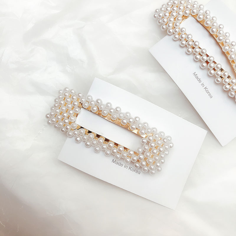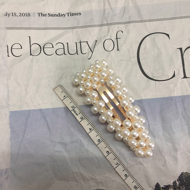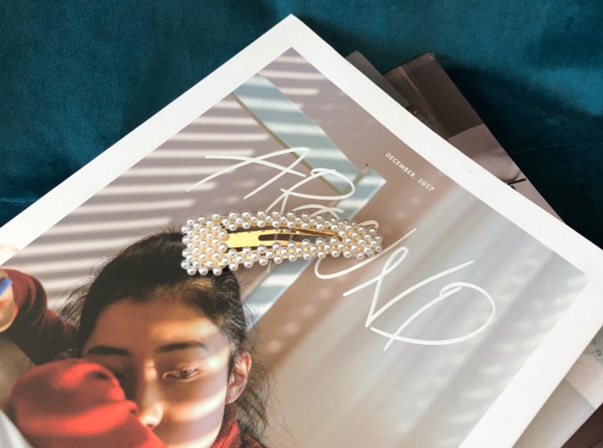 韩国东大门同款发夹淘宝网红款少女珍珠bb夹大号镀金边夹