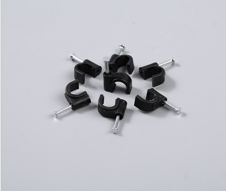 黑色圆形钢钉线卡管卡电线卡 圆型尼龙塑料钢钉线卡 固定线扣