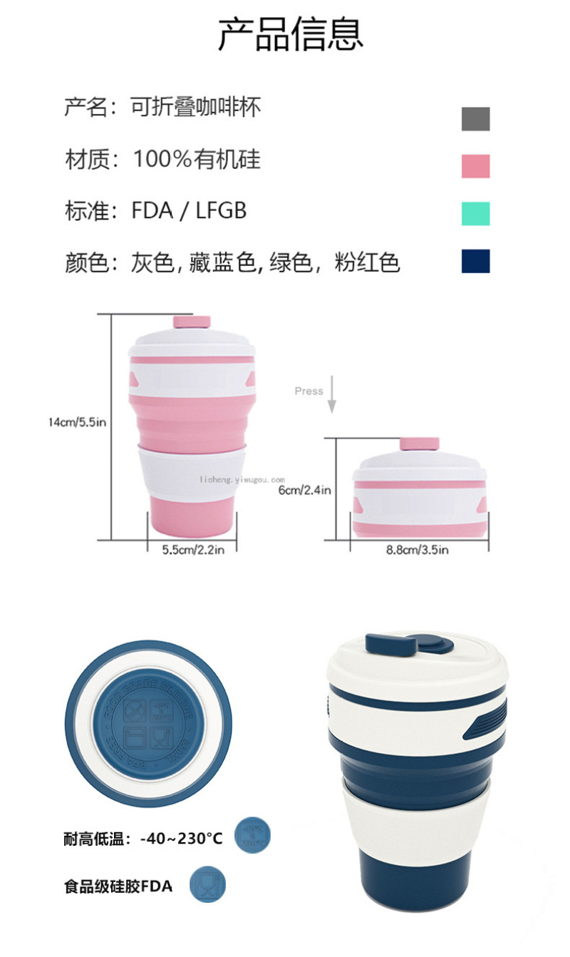 创意硅胶折叠杯子折叠咖啡杯硅胶咖啡杯户外运动水壶便携水杯