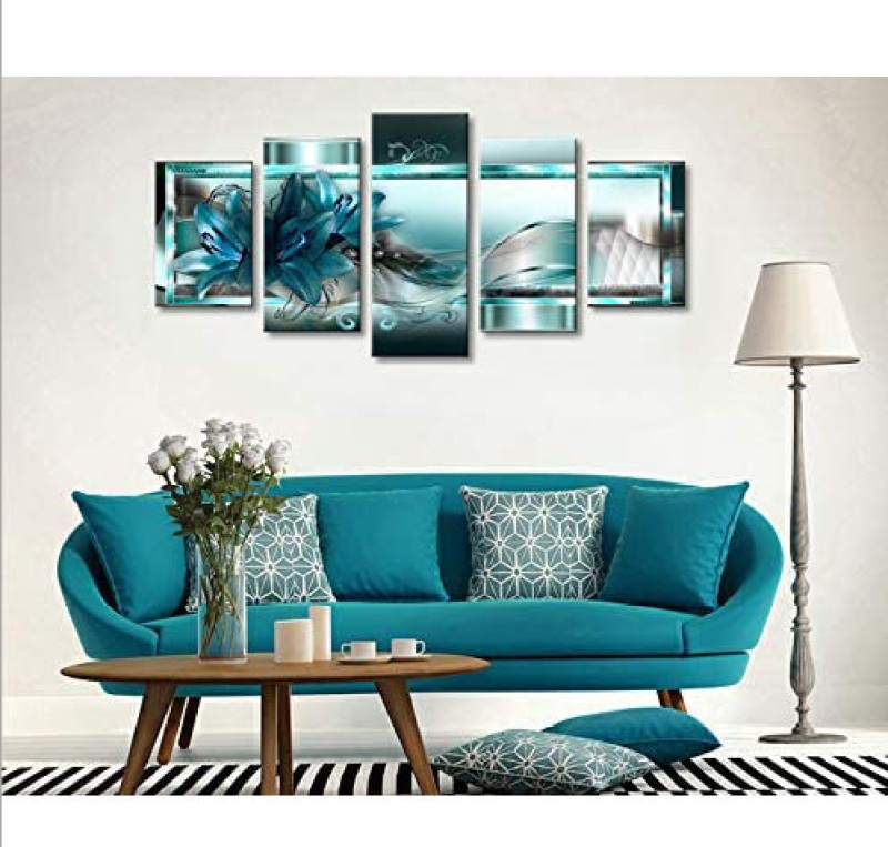 跨境新款diy魔方五联钻石画紫色花朵客厅卧室爆款装饰画