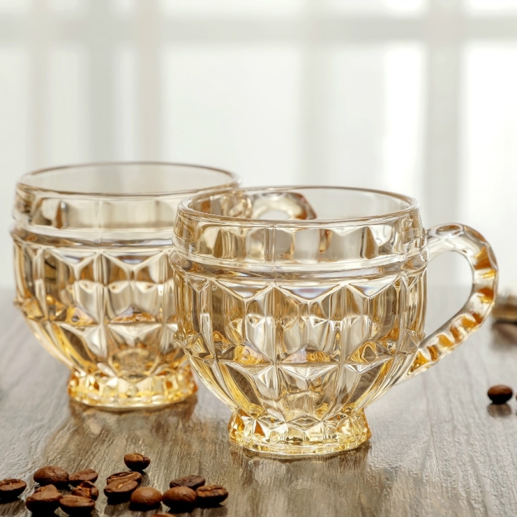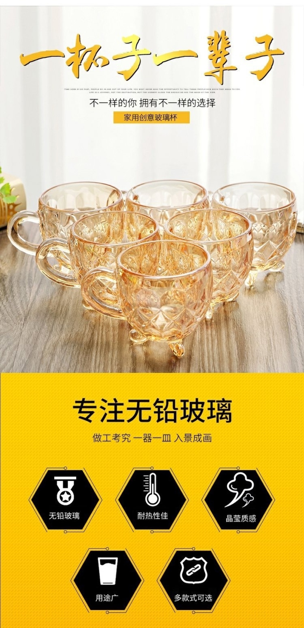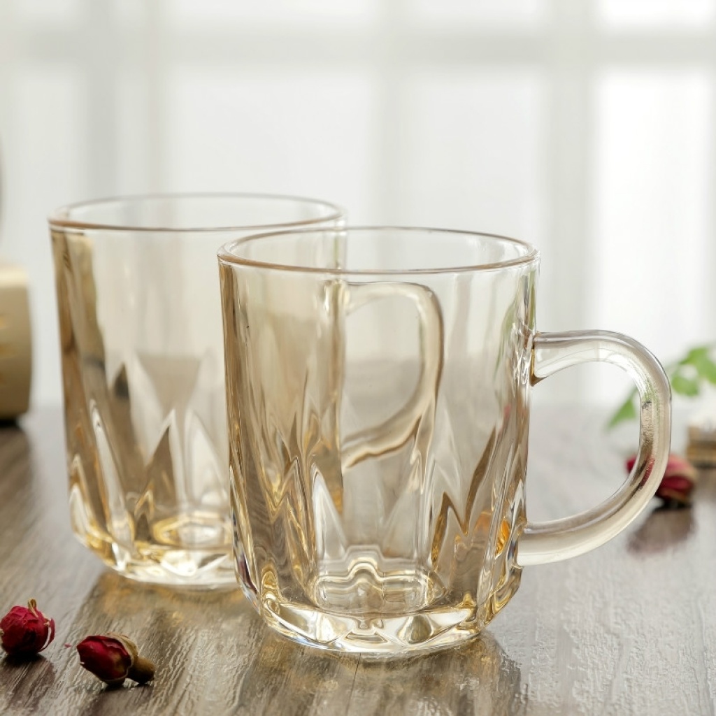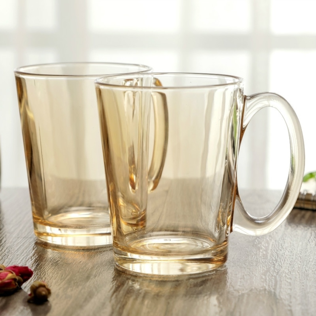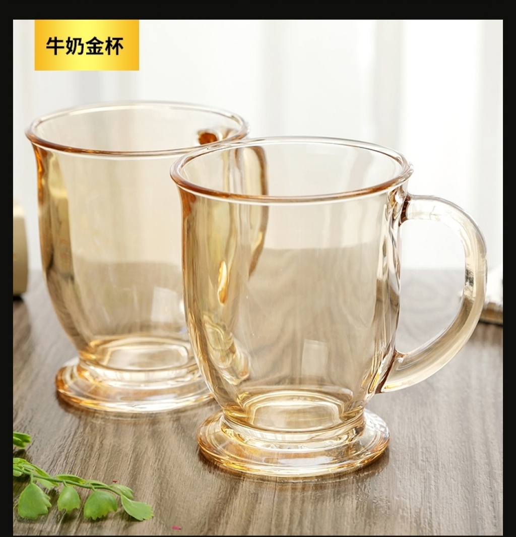 加厚玻璃杯耐热茶杯办公杯无铅金色茶具牛奶杯创意果汁彩杯