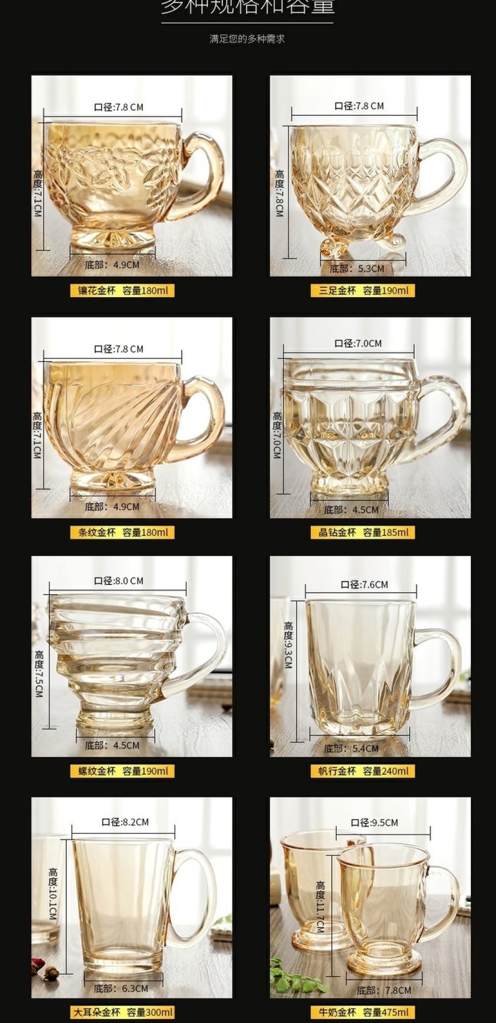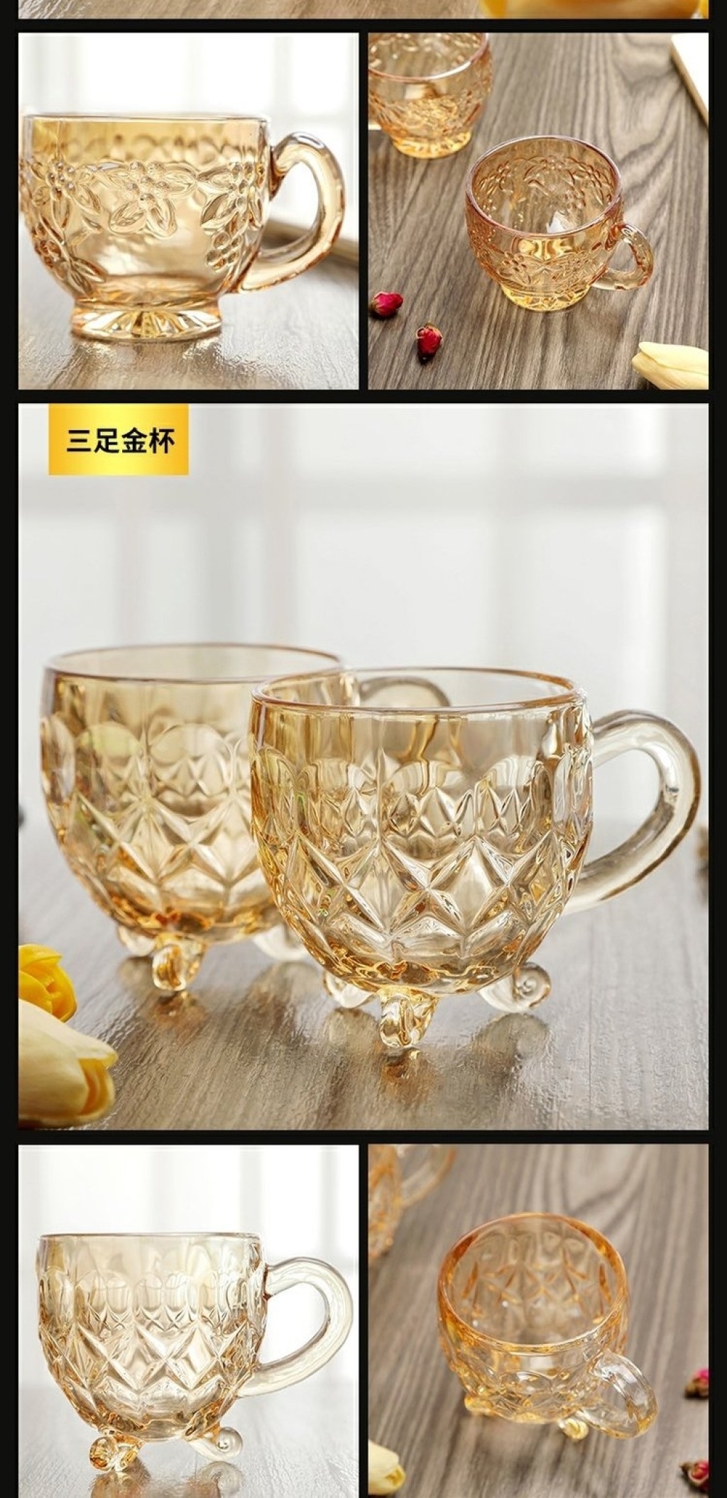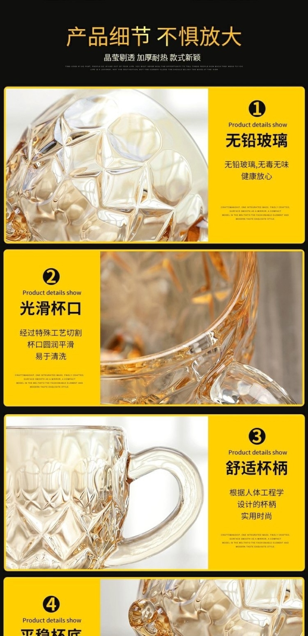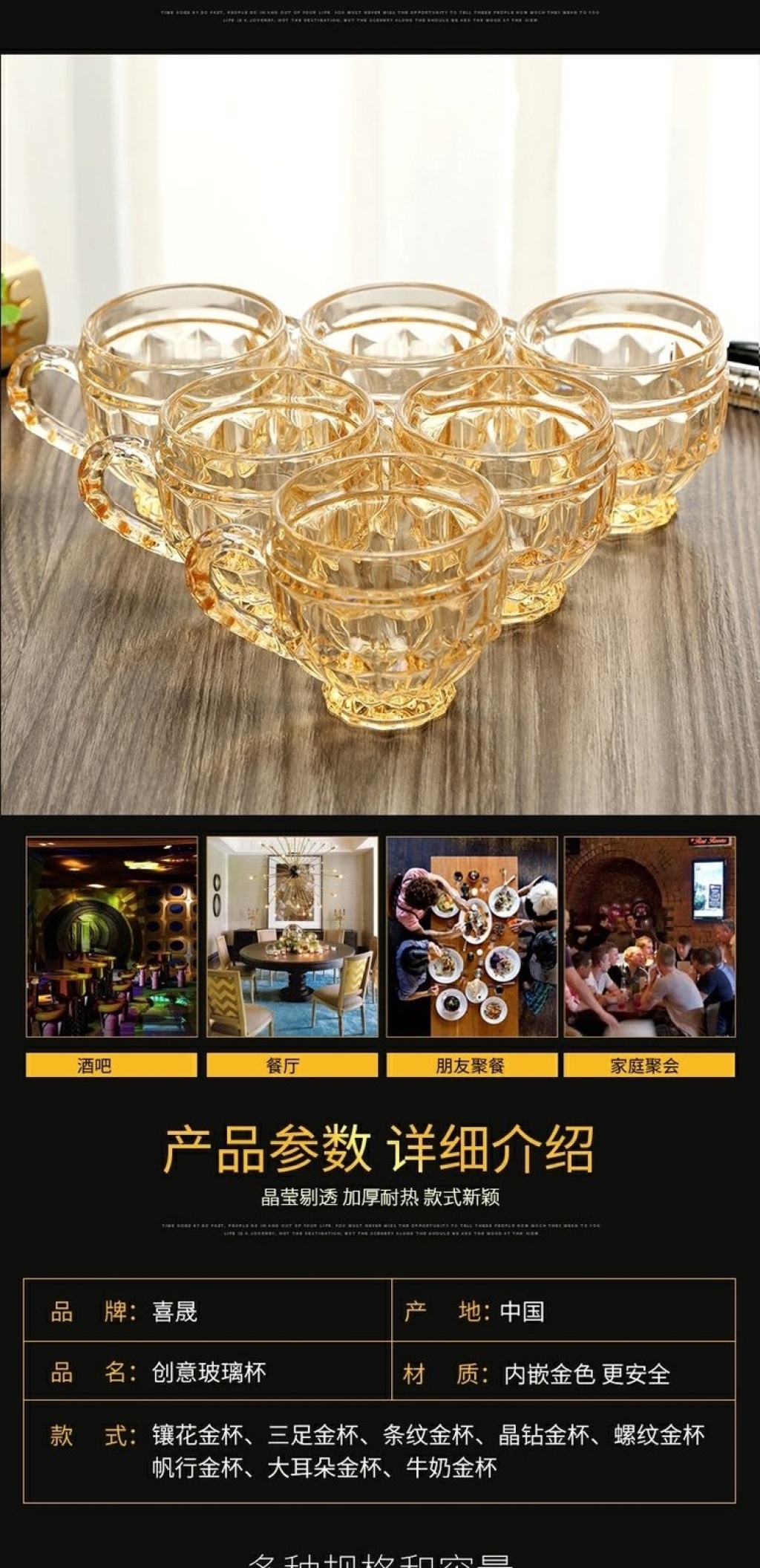 加厚玻璃杯耐热茶杯办公杯无铅金色茶具牛奶杯创意果汁彩杯