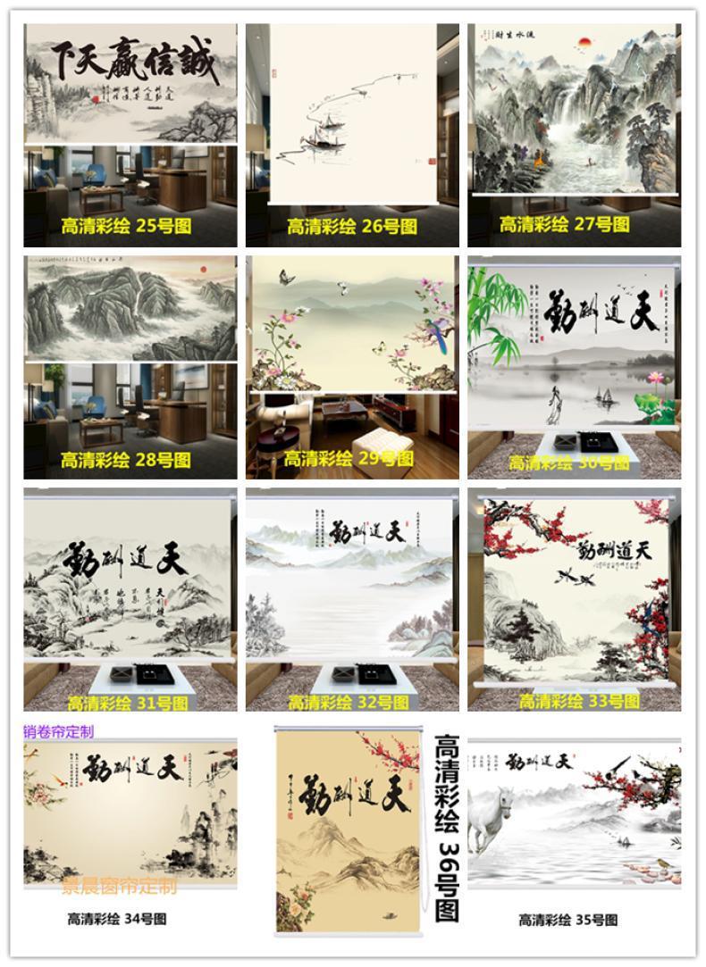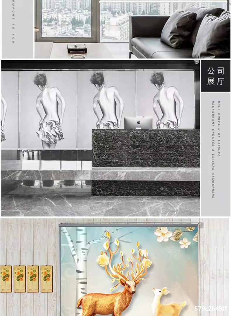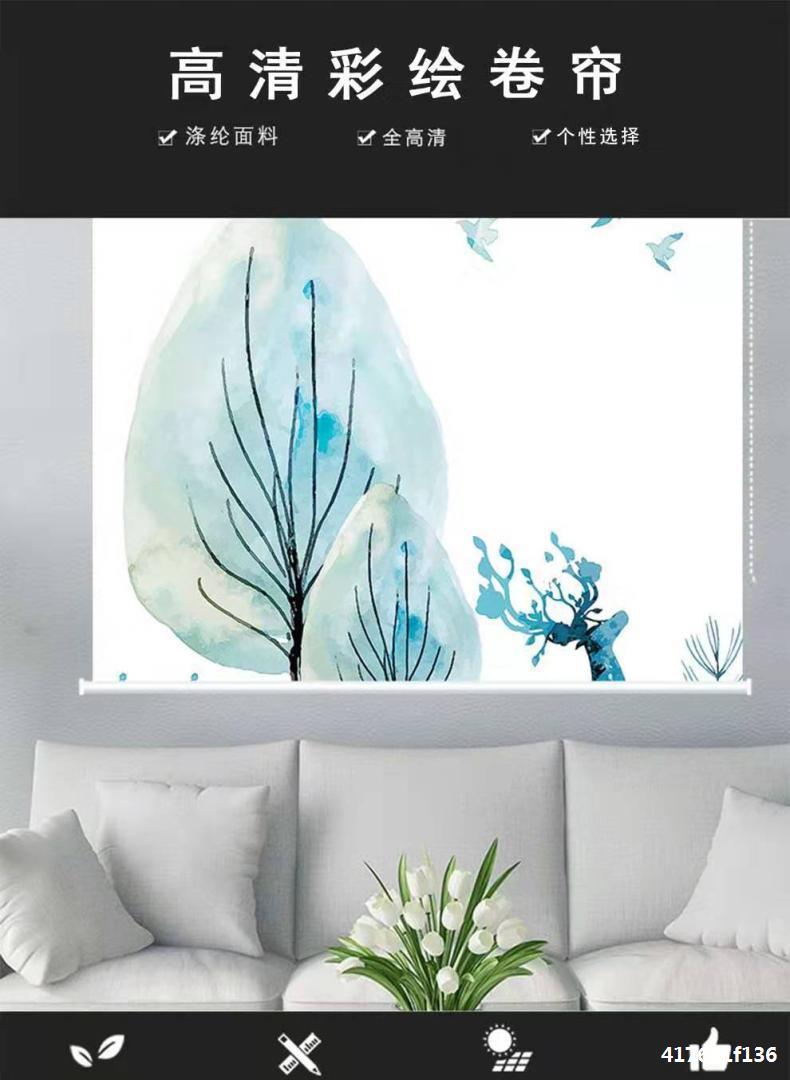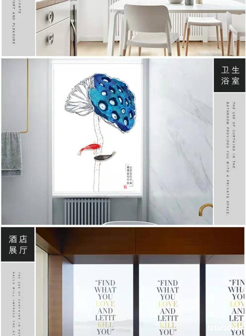 荷花打孔浮雕手拉式窗帘全遮光免客厅防水防风卷帘卫生间全家