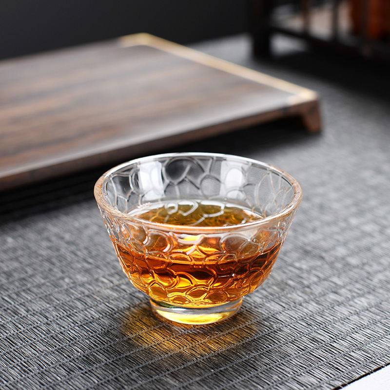 加厚玻璃品茗杯高硼硅耐热锤纹小茶杯家用个人杯功夫主人杯